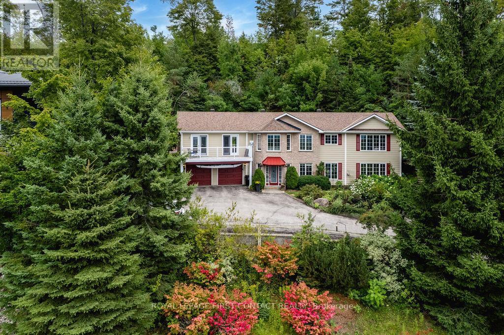 Perfectly placed on one of Horseshoe Valley's most prestigious streets, this radiant retreat offers over 3000 finished square feet with incredible valley views and priceless sunsets that will take your breath away! Surrounded by premium homes and immersed in natural beauty, the property boasts an abundance of windows that flood the space with sunlight, creating a warm and inviting atmosphere throughout. The expansive open-concept main living area with vaulted ceilings flows seamlessly to multiple decks, perfect for entertaining or simply soaking in the panoramic scenery. The updated kitchen is a chef's dream, featuring stainless steel appliances, granite countertops, a pantry cupboard, and a peninsula with breakfast bar - all framed by stunning views from every angle. With 4 bedrooms, 2.5 bathrooms, and a spacious lower-level family room, there is space for everyone to relax and unwind. The primary suite is a true sanctuary, complete with a large window overlooking the valley, a walk-in closet, and a luxurious 5-piece ensuite with separate shower and jetted tub. Step outside into a super secluded backyard oasis, where a large deck, multi-tiered gardens, a private pond, and the soothing sounds of a gentle waterfall create a peaceful retreat. The two car attached garage features convenient inside access to the main house, storage space for all your toys, and includes an electric car charger! All this, set in one of Ontario's most vibrant communities - home to two ski resorts, championship golf, endless hiking and walking trails, some of the provinces finest mountain biking, and within walking distance to a brand new public school. This is more than a home - it's a lifestyle. (id:6289)