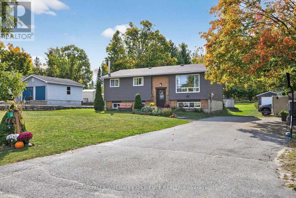 Welcome to 10 Conder Drive, a charming 3+1 bedroom raised bungalow located on a quiet cul-de-sac just minutes west of Orillia. This property offers the perfect blend of serene country living and convenient access to amenities in Orillia, Coldwater, and Barrie via the 400 extension. This home sits on a gorgeous 0.947-acre, tree-lined lot, providing a private, park-like backyard oasis. The outdoor space features a pergola sitting area, a fire pit, a woodshed, and even a treehouse with a zipline for the kids! Additionally, there's a detached workshop/garage (12'6" 24'5") with hydro. Step inside, and the main floor features a bright living room, an updated kitchen with hardwood flooring, and a dining room with a walkout to a BBQ deck. You'll find three cozy bedrooms and an updated four-piece bath on this level. The fully finished basement offers a huge family room with tile flooring, a woodstove, and abundant natural light from numerous windows. It also includes a beautifully finished laundry room, a fourth bedroom, and a recently added three-piece bath with a stand-up shower. This is an ideal home to start raising your family. (id:6289)