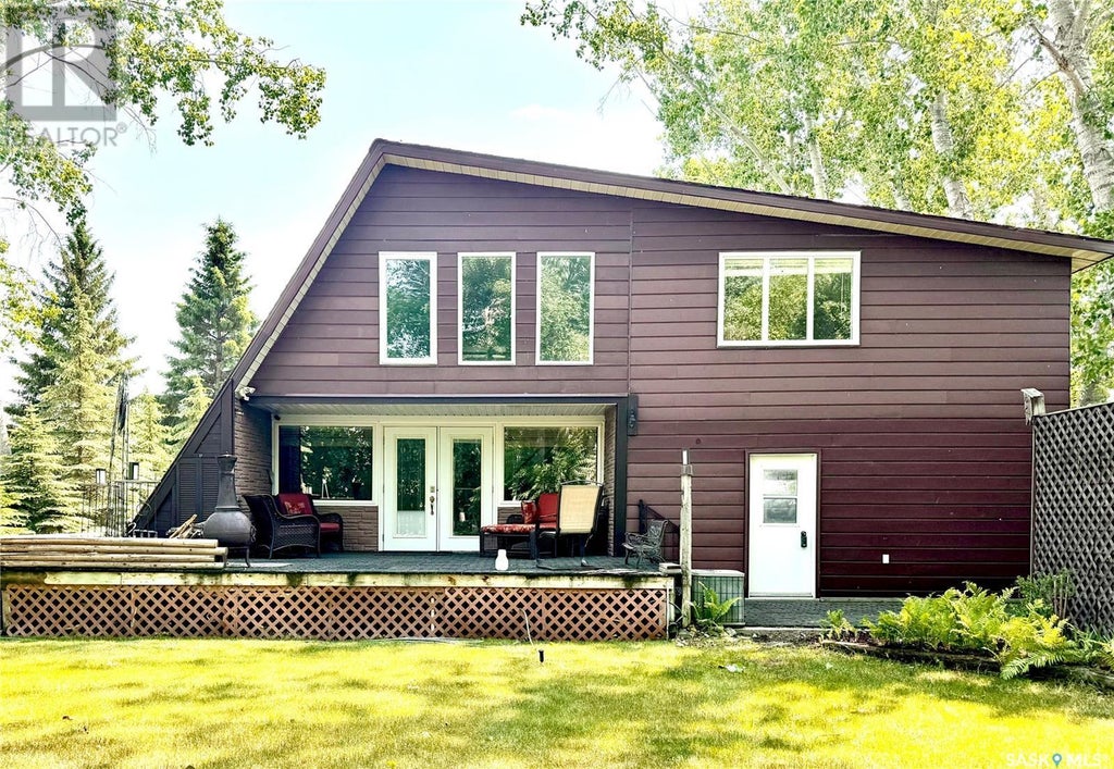 Welcome to this 4 season cabin/home located in Palliser Regional Park. This park was voted best regional park in Saskatchewan for 2024. Located in the park is an amazing golf course, swimming pool, beach, concession, all within walking distance from the cabin. Marina is also close at hand for launching your water toys. This beautiful home is located in the upper loop of the park and comes as a complete turn key property, meaning all you need to bring is groceries and your clothes. It is available with a very quick possession date to get you into your new cabin with plenty of summer days to enjoy. When you enter into this home you will look up to the beautiful open concept living both on the main level and upstairs, which will make entertaining a breeze. Upper level includes a kitchen, dining, living room, bonus room, and primary bedroom with ensuite. It also has a small breakfast deck to enjoy early morning coffee as the sun is rising. Lower level contains another family room, two bedrooms and a bathroom. From the bathroom is an entrance into the garage with laundry facilities. Enjoy the privacy on the lower level back deck, with views of mature trees and well manicured garden area. The attached garage will secure your lake toys, or vehicle when not in use, and if you still need more room there is another small shed outdoors and covered shelter. Lease fee of $1900 has been paid for 2025, current expiry of lease is Mar 31, 2050. Lease documents available upon request, buyer to review prior to offer. (id:6289)
