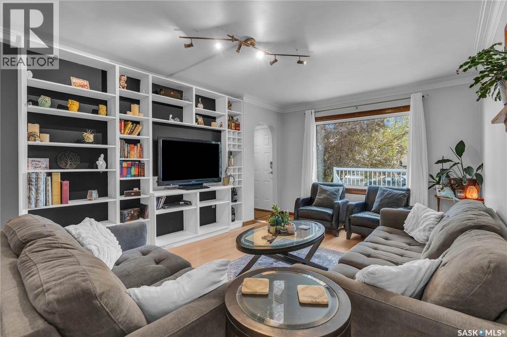 Welcome to 816 sq ft of charm and comfort in Regina's desirable Arnhem Place neighbourhood. Ideally situated just steps from Wascana Park, Candy Cane Park, elementary and high schools, and only minutes to downtown, this home offers the perfect blend of convenience and lifestyle. This bright and cheerful yellow bungalow offers fantastic curb appeal and thoughtful interior details. Inside, you're greeted by arched walkways and a spacious living room featuring large picture windows and built-in bookshelves surrounding the TV—perfect for cozy evenings or entertaining guests. The eat-in kitchen has been tastefully updated with striking forest green cabinetry and gold hardware creating a warm and stylish hub for the home. The original hardwood flooring runs throughout the living room and continues into two comfortable bedrooms and a renovated 4-piece bathroom nestled between them. The fully developed basement includes a third bedroom, a 3-piece bathroom, and a large rec room, offering excellent space for guests, hobbies, or family time. Step outside to enjoy the beautiful backyard, ideal for summer relaxation and gatherings. A single detached garage, accessible via the back alley, offers convenient parking along with additional parking space beside it. Don’t miss your opportunity to own this well-maintained, character-filled home in one of Regina’s most sought-after neighbourhoods! (id:6289)