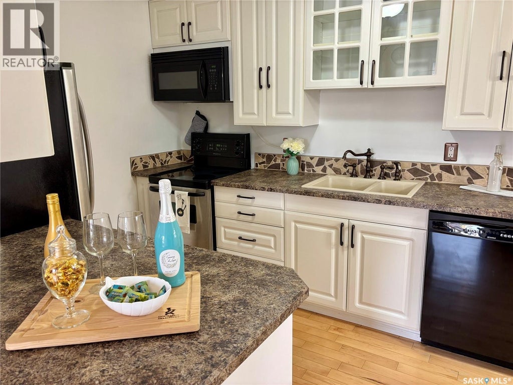 Super cute one bed, one bath main level condo (no stairs to climb) located in the lovely residential area of Gardiner Heights. Wonderful opportunity to own you own very affordable property and stop paying rent. Located close to all east end amenities such as grocery stores, restaurants, pharmacies, coffee shops, parks, and schools, and a quick drive to the U of R and Sask Polytech. This cozy unit offers hardwood flooring throughout the living room, kitchen and dining area. Lovely kitchen features bright cupboards, and the added bonus of a built in dishwasher. Living room offers large windows allowing lots of natural light into the space. Good size bedroom, 4 piece bath and a laundry/storage room with lots of cabinets complete the unit. One dedicated parking stall is included. You can also enjoy the outdoor swimming pool in the summer months. Quick possession is available. (id:6289)