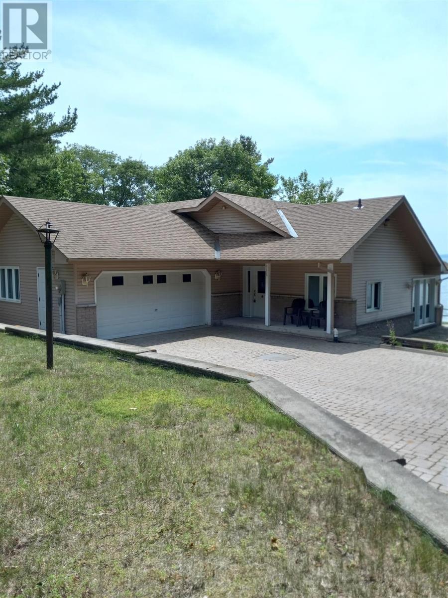 Welcome to this spacious 2-bedroom waterfront bungalow in the Gros Cap area, only 20 minutes from town. Beautiful blonde oak hardwood flooring throughout, 3 baths, expansive living and dining room windows provide a majestic view of Lake Superior. Sandy beach has water break. Double attached garage with huge interlocking brick drive. Custom built for owner by Higgins Construction in 1997. (id:6289)