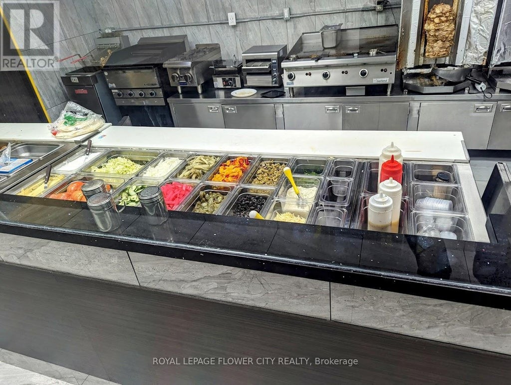 Prime Location! Don't miss out on this exceptional chance to acquire a fully equipped, ready-to-go Shawarma/ Pita/Indian/Pakistani restaurant nestled in the heart of Brampton. Situated in a Business Hub location boasting high foot traffic, it's conveniently close to the Highway 410 , residential areas, and commercial buildings. The lease terms are 3 years remaining plus an additional 5-year option. Moreover, the restaurant offers flexibility as it can be rebranded and converted to serve any other cuisine, subject to landlord approval. Equipped with 2 (15 & 13ft)kitchen hoods, a 6-burner and 2 burner stoves, tandoor, 2 fryers, Shawarma Machine, Panini Grill, and other essential equipment, great opportunity for a turn key operation, fully renovated. (id:6289)