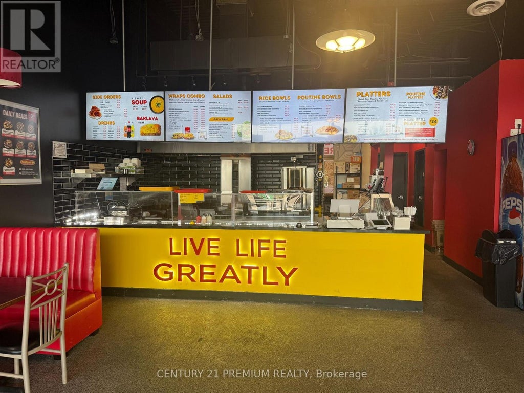 An exciting opportunity to own a well-established shawarma restaurant in a high-traffic location! This fully equipped and operational business is ready for a new owner to step in and start generating income from day one. Located in a busy plaza with excellent visibility and ample parking, the restaurant benefits from steady walk-in traffic, nearby residential communities, and surrounding commercial businesses. The restaurant can also be converted to a different cuisine with the landlord's approval. (id:6289)