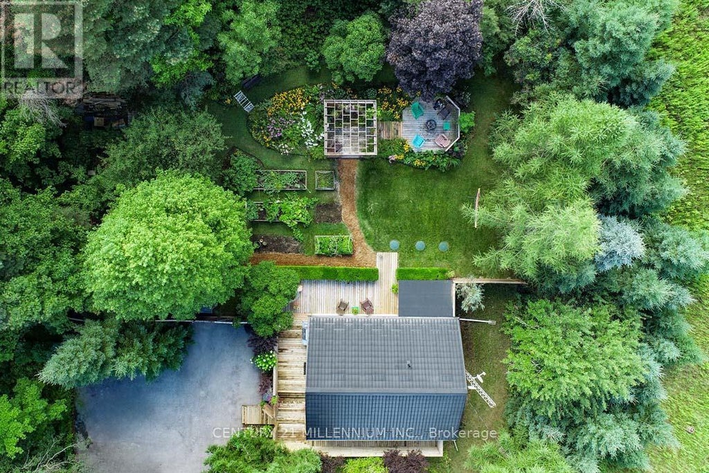 Upgrades galore in this private, open-concept bungalow set on a mature .38 acre lot with towering trees, perennial gardens, raised garden beds, multiple sitting areas, pergola, firepit, fenced backyard oasis & more! An inviting 3-sided wraparound deck leads to the front door and the hidden backyard. The bright and spacious open-concept Living Room offers real milled birch flooring, a Jotul gas fireplace, a convenient pivoting wall entertainment unit, and a Sitting Room with a walk-out to the south-facing 3-Season screened-in Sunroom. Tastefully updated, the Kitchen features Stainless Steel appliances, a 5-burner gas stove, a durable and visually striking terrazzo countertop, commissioned from artist Walter Gibson, infused with coloured glass, ceramic tile backsplash, and a nearby walk-out to the deck with a natural gas hookup for easy barbequing. The south-facing Primary is flooded with natural light, has birch flooring, pot lighting, a walk-in closet and is nearby to the 4-piece main bathroom, which includes a rainfall shower and deep-soaker tub. The lower level has an office with an electric fireplace, laminate flooring, pot lighting and a walk-in closet. A Den has laminate flooring and is used as a Hobby Room. The Laundry room is combined with the 2-piece bathroom. Turn the key and move right in! Septic (2022), Hygrade Metal Roof (2015) w/ transferable warranty, Carrier Furnace (2020), A/C (2010), well pump (2016), paved driveway (2022), 2 sheds (2021) wired for hydro. Fabulous location near the Villages of Belfountain & Alton. Enjoy being centrally located to farmers markets, quaint restaurants, art centres, farms, hiking and biking trails, skiing, TPC Golf at Osprey Valley, craft breweries and more! 10 mins to Amenities in nearby Erin, Orangeville. 30 mins to the GO Train. 40 mins to Pearson Airport and a 1-hour drive to Toronto. (id:6289)