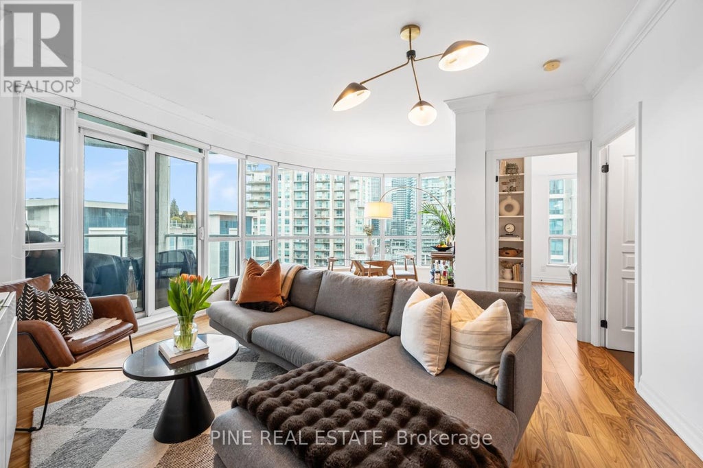 Choose these views! Embrace the serenity of waterfront living at The Waterford Towers by Canderel Stoneridge, where breathtaking water views and timeless elegance condo. This exquisite 1-bedroom, 1-bath rounded suite offers a lifestyle beyond compare. With a total of 703 sqft of carefully designed space, every inch speaks of sophistication and comfort. Gaze out of the panoramic bow window to witness the ever-changing hues of the waterfront, or step on your open balcony for stunning southwest vistas. This is your front-row seat to mesmerizing sunsets and city lights. The beauty continues inside, where you'll discover a meticulously updated unit, boasting fresh paint, new window coverings and a stunning $25K renovation that has turned a dated bathroom into your very own spa-like retreat. Enjoy the convenience of a locker and parking. Plus, with the TTC streetcar right at your doorstep, you'll have seamless connectivity to downtown, ensuring that every day becomes an extraordinary adventure. Grill masters, this condo permits private BBQs on the balcony so you can cook to your heart's content and have deliciously smoky flavour barbecue meat/veggies all year round using your private gas hookup. Unit Is A Must See! Newly in Painted Benjamin Moore Chantilly Lacy & Renovated Bathroom (2022), Br Closet w/ B/I organizers. Smooth Ceilings w/ Crown Moulding & pot lighting, New roller blinds(2022), Parking + Locker + Amazing Amenities. (id:6289)