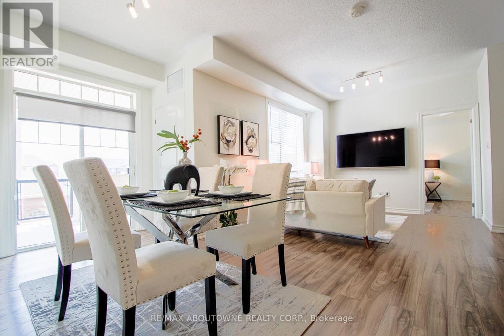 Sun-filled condo with oversized 214 sq.ft terrace. Spacious and bright, this open-concept 2-bedroom, 2-bath condo offers approximately 1,000 sq. ft. of stylish living plus one of the largest covered terraces (214 sq. ft.)ideal for year-round relaxing or entertaining. The modern kitchen features a breakfast bar, upgraded cabinetry, quartz countertops, and a generous pantry. Freshly painted and finished with easy-care laminate flooring.Enjoy the convenience of direct private garage access with an additional driveway parking space. The primary bedroom boasts a 4-piece ensuite and walk-in closet, while the second bedroom includes a handy Murphy bed for flexible use of space.Steps to Walmart, cafés, restaurants, Loblaws, parks, and schools, and just minutes to Highways 403/407/QEW, the GO Train, and public transit. (id:6289)