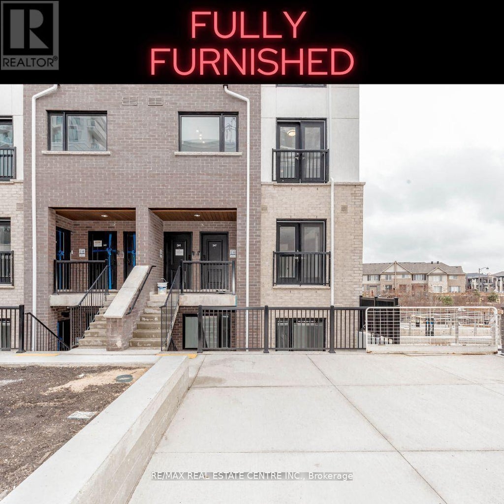 Welcome to Oakvillage by Minto. This stylish FULLY FURNISHED end unit townhome offers nearly 1,100 sq ft of thoughtfully designed living space, 2 large bedrooms, 2 full bathrooms, upgraded kitchen, one private patio, and a terrace that backs on to green space. Enjoy an open-concept layout with laminate floors throughout and high ceilings for an open airy feel. The sleek kitchen is equipped with stainless steel appliances, herringbone backsplash, quartz countertops, and breakfast bar. The primary bedroom includes a large walk-in closet with a private ensuite bathroom. This location boasts easy access to the 407, 403, QEW and Oakville GO Station. Less than a 15 minute drive to main areas in Mississauga. Lots of department stores, shopping plazas, upscale restaurants, high rated schools and public transit right at your door step! **Unlimited 1.5 GB internet included** (id:6289)
