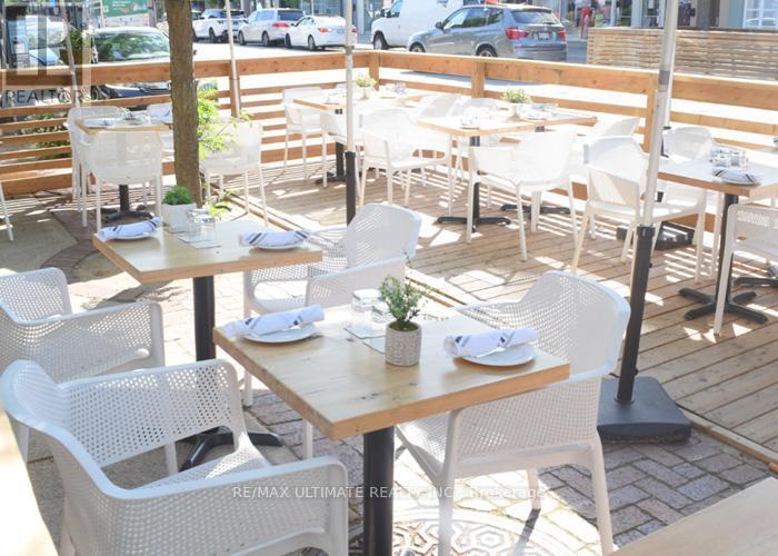 Turnkey licenced Gorgeous and spacious restaurant in the heart of Downtown Oakville!! Chef's dream kitchen with smart layout and fully equipped. LLBO for 120 + 48 on patio. Located on the best part of Lakeshore in Downtown Oakville. 3,736sqft + basement & front patio. Large bar area and private dinning room. Add your entrepreneurial magic to this well laid out RestoBar on exclusive Lakeshore Rd E, the heart of the food and entertainment district on the Oakville waterfront. Features an oversized commercial vent hood, walk-in fridge and freezer in kitchen and transferable LLBO. All existing chattels included! (id:6289)