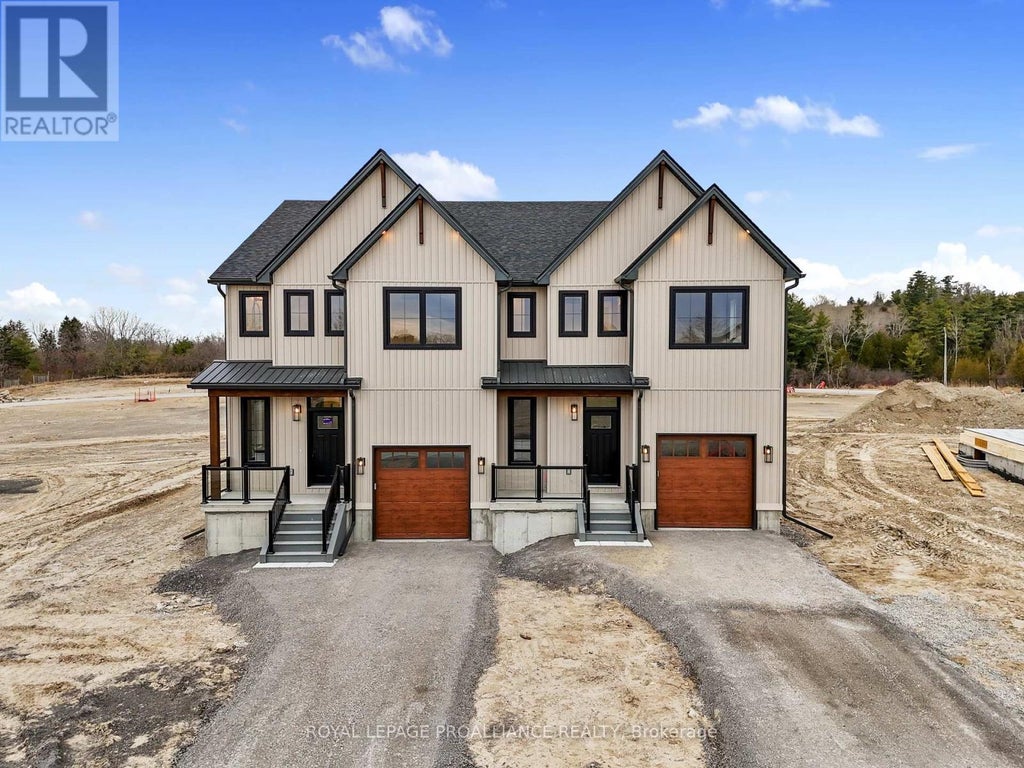 OPEN HOUSE - Check in at Eastfields Model Home 60 Hollingsworth St., Colborne. The Flynn at 3 Hollingsworth is a spacious semi-detached home offering 3 bedrooms and 2.5 bathrooms, with 2,027 sq ft of living space. Nestled in the serene and welcoming community of Colborne. Designed with modern families in mind, this home blends functionality and style with a practical layout and high-end features. Enter through the spacious front foyer, greeted by a staircase leading up to the second level. A closet for storage and a powder room are conveniently located off the foyer. The mudroom provides easy access to the 1-car garage and leads into the open-concept kitchen, dining, and great room. The kitchen flows seamlessly into the dining area and great room, creating a perfect space for family gatherings and entertaining. A sliding door from the dining room leads out to a deck, featuring a privacy screen to ensure homeowners enjoy their outdoor space without feeling overlooked by their neighbours. On the upper level, the primary bedroom features a large walk-in closet and a luxurious ensuite bathroom. Additionally, there is a large laundry room, providing added convenience and storage. The two generously sized bedrooms share a primary bathroom, and a rough-in elevator or optional closet is available on this level. The Flynn stands out for its privacy screen on the deck, offering separation from neighbours and enhancing outdoor enjoyment. The versatile storage options, including the closets created from the rough-in elevator on both levels, provide added convenience without sacrificing style. This home offers a perfect blend of modern design, spacious living, and practical features, ideal for growing families or those who want extra space to live comfortably. COMPLETED - MOVE IN READY! (id:6289)