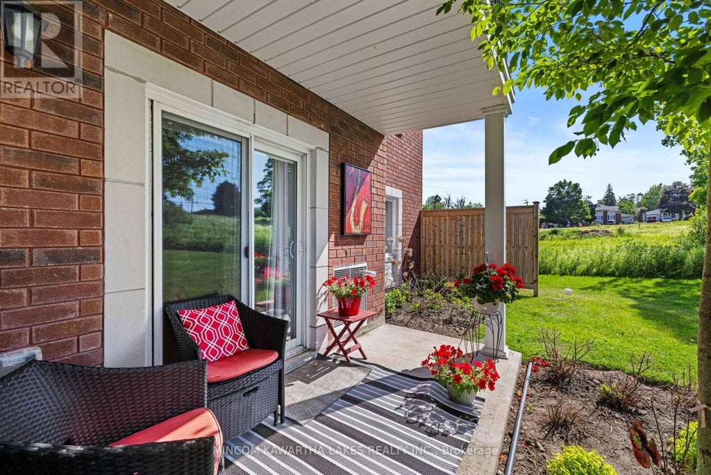 Lovely main floor end unit condo in a terrific location - close to shopping, The Parkway, hospital, Kawartha Golf Club, and all amenities. Main floor laundry off kitchen and sliding doors from the living room to the patio and yard area. Central Air. All appliances included. (id:6289)