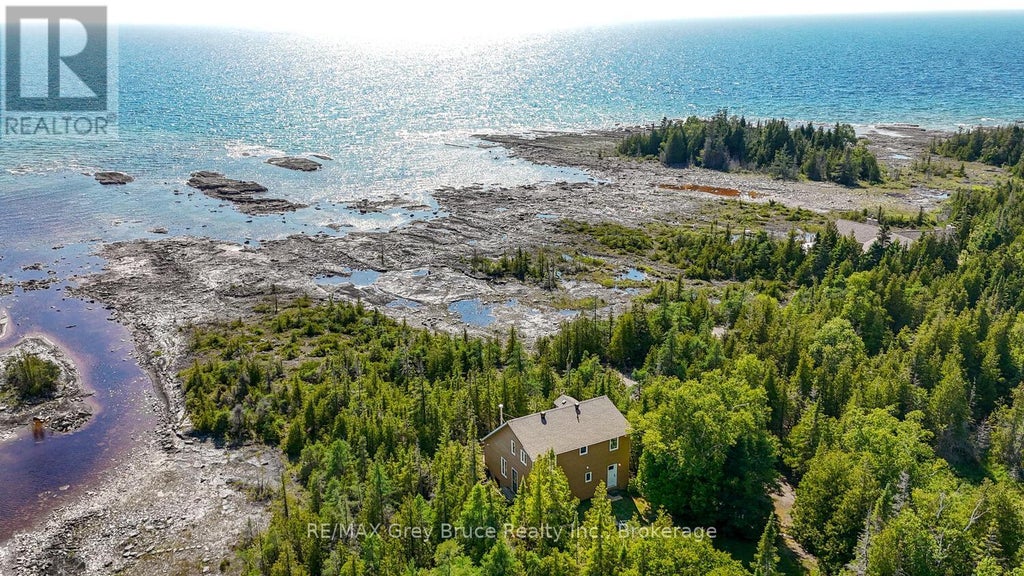 This picturesque 1.9 Acre property boasts over 500 feet of undulating shoreline frontage and access to Lake Huron. The landscape is wonderfully diverse - mature trees provide privacy around the home or cottage, while the rugged yet accessible rocky shoreline is rich with character. A tranquil pond adds to the charm, creating a natural haven for birds and wildlife. Whether you're drawn to the sweeping views of Lake Huron or the calm shallow waters of a sheltered cove, the shoreline offers numerous spots to bask in the sun and unwind to the soothing sounds of the waves. Inside the 1314sq.ft. home or cottage, you will find a bright and inviting living room featuring 16-foot vaulted ceiling and direct access to the deck - perfect for indoor-outdoor living. The dining area showcases a large window with a water view. A handy passthrough connects the dining room to the fully equipped kitchen, which offers ample cupboard space and a dedicated broom closet. Main-floor living is effortless, with a spacious primary bedroom and a 3-piece bathroom complete with a washing machine. Upstairs, a cozy loft provides an ideal retreat for reading, games, or conversation. Two generous bedrooms and a 4-piece bathroom on the upper level offer comfortable accommodations for family or guests. Large windows throughout the home flood the space with natural light. Outside, a storage shed and an unfinished basement give you plenty of room to stow seasonal furniture, outdoor gear, or tools. Located at the end of Zorra Drive, the property is just a short drive from Tobermory, where you'll find shops, restaurants, and a wide range of recreational activities. (id:6289)