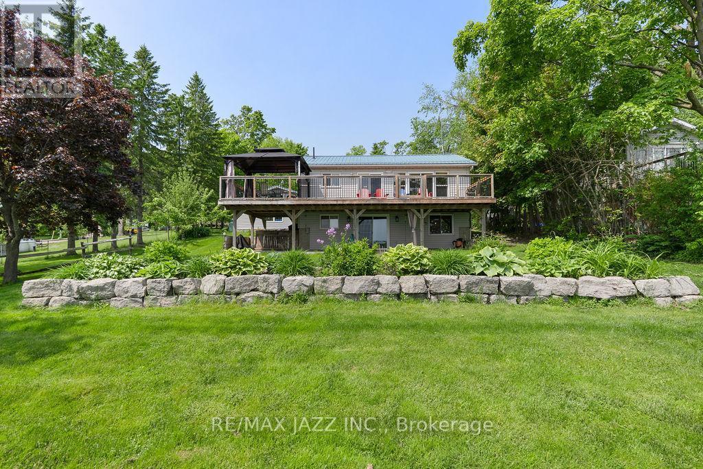 Easy maintenance, waterfront home on Sturgeon Lake, which is known for reliable depths for larger boats and access to connecting lakes .. This home is literally minutes from the town of Lindsay, off Angeline St. North. Vinyl-sided, metal-roofed home with a wheelchair accessibility ramp up to the deck overlooking the lake. Triple-sized, detached garage/workshop, heated and insulated with room for a workbench, motor boat storage on a trailer, car storage, lawn tractors, and general storage racks. Bright open concept home with the living/dining/kitchen areas all overlooking the lake with a walkout to the deck and Gazebo. Perfect layout for entertaining! See Feature Sheet attached for list of improvements made in the last 5 years and included in the purchase price. Lot is level on the roadside, with a gentle slope toward the lake, allowing for a walkout basement. Professional landscaping allows for a gentle, terraced slope down to the lake, where there is a new utility shed, 3 dock sections, a hydro plug, and a marine track to lift and secure your motor boat. (id:6289)