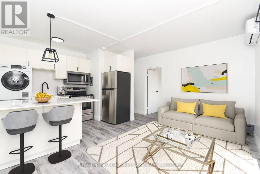 Check out this awesome third-floor apartment in Landsdale, Hamilton, totally revamped for modern vibes! Its got sleek stainless steel appliances, air conditioning, and in-suite laundry for max convenience. The open-concept living space rocks a brand-new kitchen with a cool island bar top, quartz countertops, and slick luxury vinyl flooring that gives it a fresh, welcoming feel. Plus, you get a private balcony, modern fixtures, and a secure mail room on-site. Smack in the middle of Hamiltons Business District, youre steps away from Jackson Square, Hamilton GO Centre, Hamilton General Hospital, and tons of transit options to zip around easily. Schedule a showing now! Tenant covers hydro. Some pics are virtually staged. (id:6289)