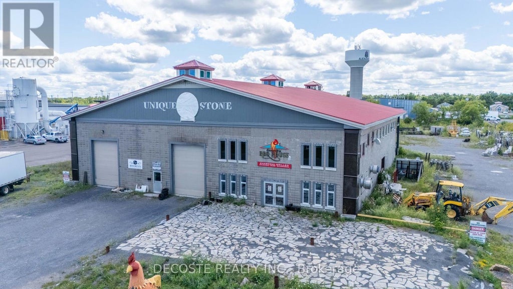 Endless Possibilities Industrial Building in Alexandria's Industrial Park! Located at the northwest edge of Alexandria in the industrial park, this 10,000 sq. ft. industrial building with an additional 2,500 sq. ft. covered concrete pad sits on a 1.84-acre lot offering plenty of room for parking and storage. Constructed with a cement block and steel frame, the building features a metal roof, 24-foot clear ceiling height, and is fully serviced with municipal water, sewer, and natural gas. It also boasts 600-amp electrical service, suitable for heavy-duty industrial operations. Previously used as a welding fabrication facility and currently home to a granite countertop manufacturing business, this versatile space includes a second-floor mezzanine, washrooms, office area, and more A bonus feature is the fully equipped rotisserie chicken restaurant, with seating for 30 indoors and an outdoor seating area, offering an additional income stream or business opportunity. Included with the sale:1 jig crane, 3 overhead cranes, Boom, Wilhelmburger 20-ton shear, Promecam RG204 20-ton bender, Generator. Please Note: Equipment and inventory related to Unique Stone, as well as all restaurant equipment, are excluded from this sale but could be purchased separately. The assets of Unique Stone can be purchased separately including 2 CNC machines, slab polisher, 1 ton Jig crane 3 fork lifts misc tools,+ 200 slabs valued @$1,000. each. (id:6289)