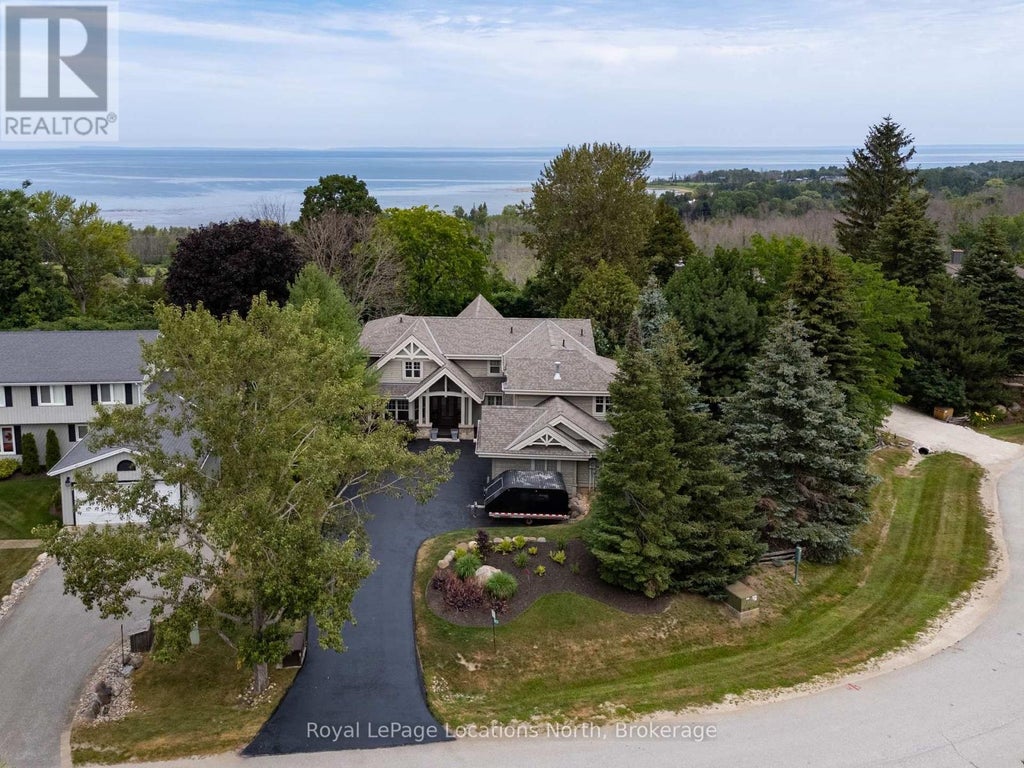 Camperdown - Perched on a ridge with breathtaking views of Georgian Bay. This stunning property features 5 bedrooms and 4.5 bathrooms, including a main floor bedroom for added convenience. The open-concept kitchen, dining, and living area boasts large vaulted ceilings and expansive views, perfect for entertaining. The finished lower level includes a rec-room, an additional bedroom, a 3-piece bath, and a relaxing sauna. A double car garage provides ample parking. Nestled on a quiet cul-de-sac, this home is ideally located between Georgian Peaks and the Georgian Bay Club, and just minutes from skiing, golf, the Georgian Trail, Thornbury, and all the area's amenities. (id:6289)