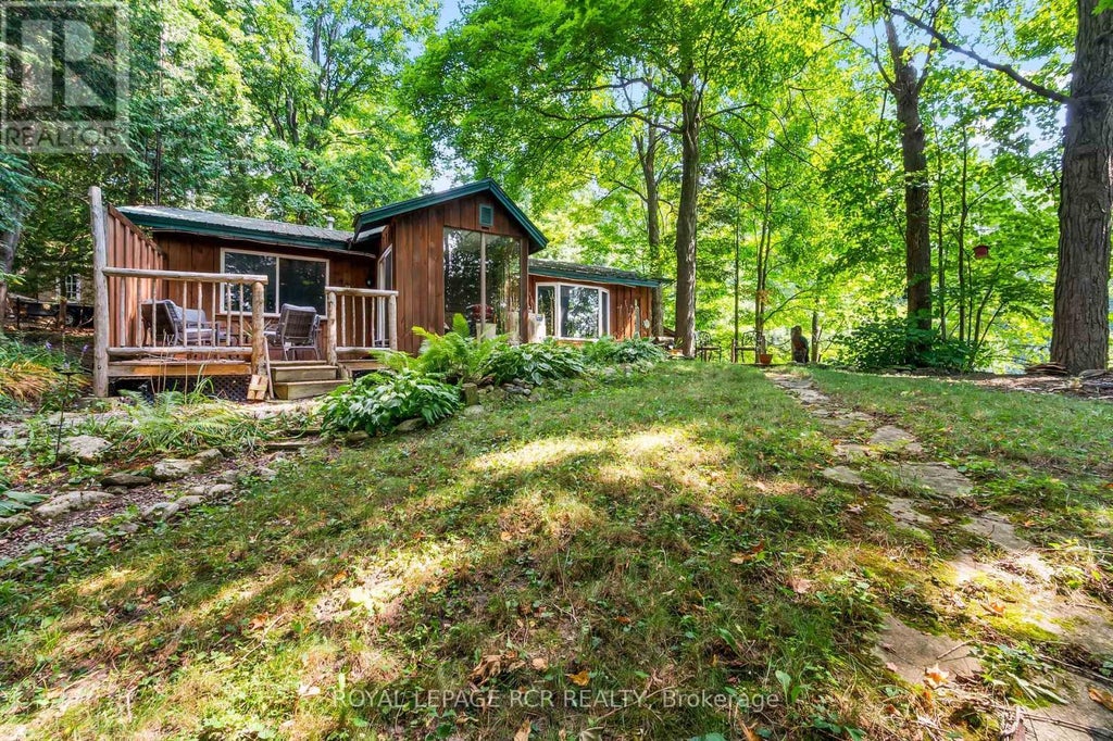 Tucked away in the coveted Roman Lake community, this rustic yet refined bungalow offers the ultimate private escape. Whether you're searching for a peaceful weekend hideaway or a place to call home year-round, it's a setting that soothes the soul. Wake to serene lake vistas framed by mature trees, where deer, birds, and other wildlife create a living backdrop. Inside, you're welcomed with soaring vaulted ceilings, an updated kitchen, and an inviting blend of hardwood and slate underfoot. A built-in bar area takes full advantage of sweeping views, making every coffee or cocktail feel special. In the spa-inspired bathroom, heated floors add a touch of indulgence, while a corner jacuzzi-style tub and sleek glass walk-in shower promise relaxation at the end of the day or a refreshing start in the morning. Keep cozy with two fireplaces or rely on the efficiency of a forced air furnace when the seasons shift. Multiple windows let in generous natural light, accenting the warm wood finishes throughout. Step outside and the magic continues. Expansive decks, a private patio, and a charming detached log cabin with hydro provide endless opportunities for hosting, lounging, or simply enjoying the calm. One of the practical perks of the home is the hookup for a backup generator. Situated just minutes from the village of Hillsburgh, which offers small-town charm with welcoming shops, local eateries, and a friendly, walkable main street. For commuters, the location is just a short drive to Erin, Orangeville, and Guelph, with easy access to Georgetown, Milton, and Brampton, making it a comfortable commute to the GTA. (id:6289)