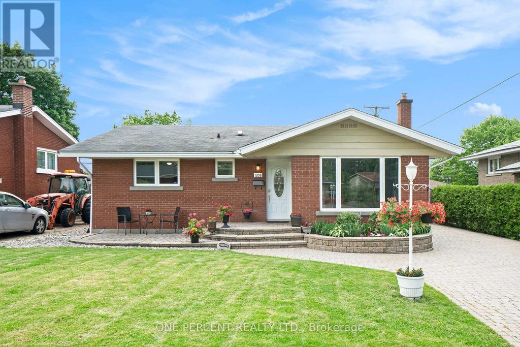 Welcome to 1208 Stanton Road! This all-brick bungalow features 3 bedrooms, 2 bathrooms, and a fully fenced backyard featuring an inground pool with gas heater, deck, stone patio, and garden shed. Main floor includes a refreshed kitchen with granite countertops, updated cabinetry, pot lighting, and space for dining, plus a living room, 3 bedrooms, and an updated full bathroom. Hardwood and tile flooring throughout with carpet in bedrooms. Finished basement offers a large recreation room, two-piece bath, laundry, and storage with durable laminate flooring. Recent updates: Stove & Dishwasher (~2022), Furnace & Central Air (~2018), Hot Water Tank (~2018), Pool Heater (~2019), Chimney work (~2020), Kitchen/Basement/Bathroom updates, Pool liner (~2021). Roof 2008. Most windows 1994. Located near Kilreen Park with tennis courts, soccer field, splash pad, playground, and close to amenities including Ikea, Highway 417, Bayshore Mall, and Queensway Hospital. 24-hour irrevocable on offers. Pool was professionally closed for the Winter -receipt on file. *Primary bedroom image has been digitally staged to illustrate an alternative furniture layout. (id:6289)