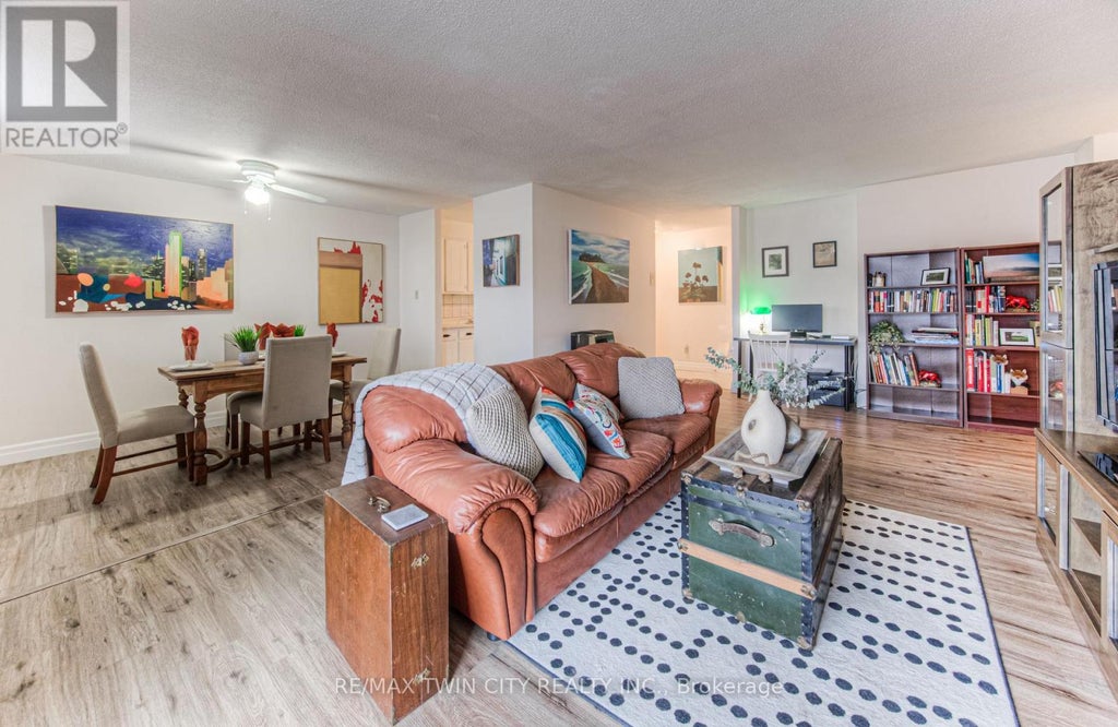 OFFERS WELCOME ANYTIME! Ground-Floor 2-Bedroom Condo in Prime Kitchener Location! Enjoy the ease of low-maintenance living in this bright and spacious 2-bedroom, 2-bathroom main-floor condo, perfectly located just steps from the Laurentian Power Centre and offering quick access to Highway 7/8 for seamless commuting. Inside, you'll find a smart, open-concept layout with a generous dining area and a walkout to your own private patio, ideal for quiet mornings or relaxing evenings outdoors. The oversized primary bedroom is a true retreat, complete with a walk-in closet and a private 2-piece ensuite for added comfort. Designed with convenience in mind, this unit features blackout blinds throughout for added privacy and climate control, plus a wall-mounted A/C unit to keep you cool in the warmer months. Additional highlights include: Underground parking for year-round ease, a shared laundry room conveniently located just steps from your door and all-inclusive condo fees, covering all utilities for simple budgeting. Whether you're a first-time buyer, looking to downsize, or seeking a great investment opportunity, this move-in ready unit offers exceptional value in a well-connected, amenity-rich neighbourhood. Simple, stylish, and stress-free living. Book your private showing today! (id:6289)