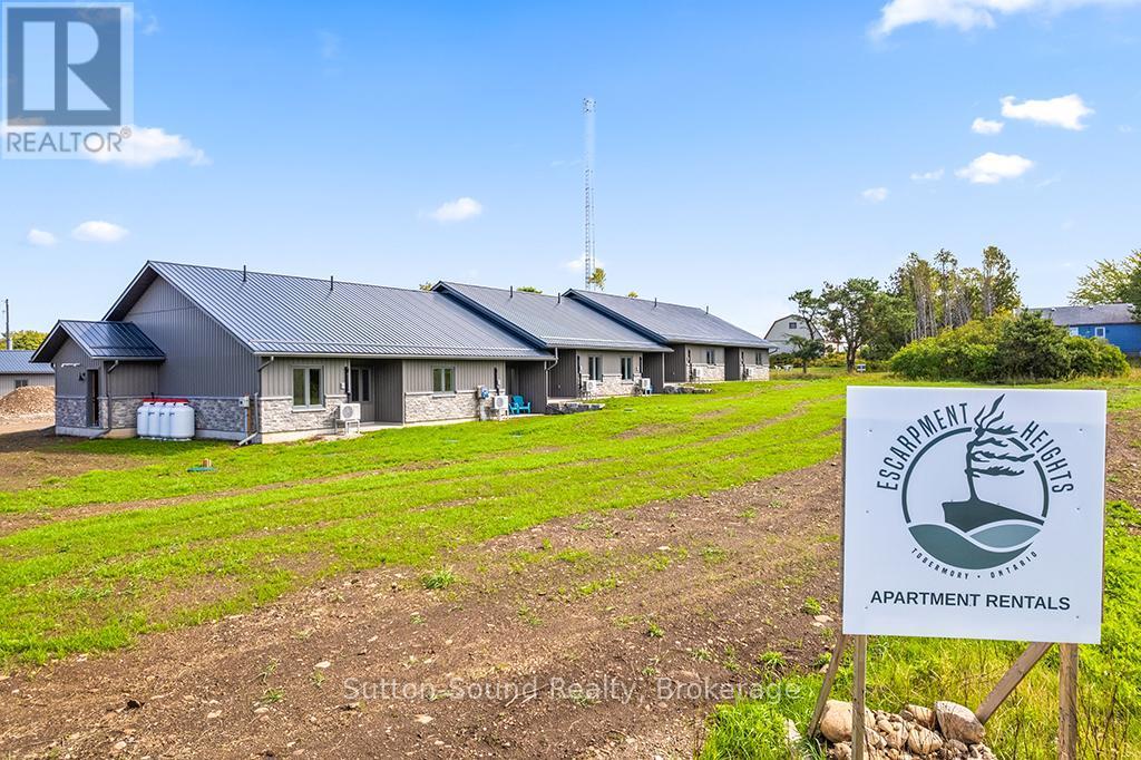 Welcome to Escarpment Heights, a thoughtfully designed retirement rental community offering the perfect blend of comfort, convenience, and peace of mind. These townhome-style apartments are an excellent option whether you're looking to enjoy year-round living in Tobermory or spend summers here and head south for the winter, knowing your property will be cared for with lawn maintenance and snow removal included. Each unit has been built with quality in mind, featuring open and spacious layouts, paved driveways, covered entrances, and private outdoor spaces. Deluxe units offer the added bonus of a single-car garage and den. Every home is equipped with in-floor heating, air conditioning, and 36" door widths for accessibility, along with a full suite of stainless steel appliances including fridge, stove, dishwasher, microwave, washer, and dryer. The Standard One-Bedroom unit provides 720 square feet of well-planned living space. It includes a large master bedroom with generous closet space and an open-concept kitchen, dining, and living area highlighted by a built-in pantry. The rental rate is $1,650 per month plus hydro, with in-floor heating, water, property taxes, lawn care, guest parking, and snow removal all included. Escarpment Heights is more than just a place to live - its a lifestyle. Set in the heart of Tobermory, its the perfect choice for those seeking a secure, low-maintenance retirement home surrounded by the natural beauty of the Bruce Peninsula. With Phase 1 now complete and Phase 2 coming soon, this is the ideal time to reserve your unit and secure your place in this sought-after community. Contact me today to arrange a viewing or learn more about availability at Escarpment Heights. (id:6289)