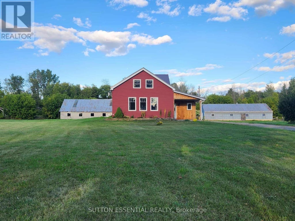 Country roads, take me home - to a place west of Spencerville! Set comfortably back from the road on 3.84 acres, this home comes complete with two outbuildings (47ft x19ft and 33ft x58ft) that could be utilized for many visions. Previously used for horses, there are still three stalls in one, but could easily be turned into a workshop, huge detached garage, art studio - you won't lack storage space that's for sure! Enjoy the outdoors on either the front verandah or back deck - or head inside to find a beautifully open main level. The living room features exposed brick and beam walls, adding a gorgeous element for anyone looking to decorate in a country home. The kitchen has been updated with centre island, granite counter tops, double bowl apron sink - and picture the herbs that can be grown on the deep set window sills, perfect for the chef! Three bedrooms, two full bathrooms, main floor laundry - those are key, but just as important - metal roof, main house has been completely insulated with spray foam including the attic, main staircase that has been beautifully completed, new baseboard heaters, high efficiency propane furnace, new flooring in the main floor bedroom, and freshly painted throughout. Immediate occupancy is available here, so don't just look at the photos, book a showing to view in person! (id:6289)