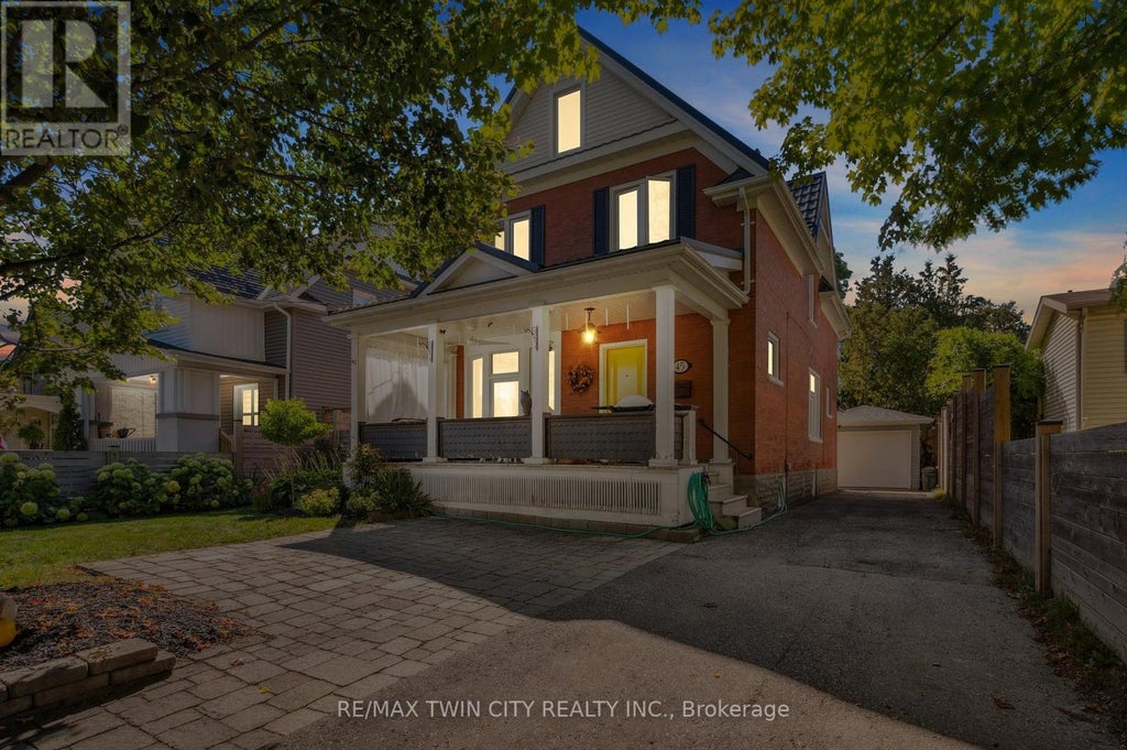 Welcome to this beautifully updated 2.5-storey century home, where timeless character meets modern comfort. Nestled on a quiet, tree-lined street in Kitchener's sought-after East Ward, this home offers a walkable lifestyle close to parks, schools, and everyday amenities. Step onto the spacious covered front porch and inside to find original charm throughout: crown moulding, high baseboards, bay windows, and stained glass - balanced by thoughtful updates. The renovated kitchen features granite countertops and heated floors, while the updated 3-piece bathroom also includes heated floors for year-round comfort. Designed with flexibility in mind, this home is ideal for your growing family or multigenerational living, offering a second kitchen with Quartz counters, a primary bedroom with a 4-piece ensuite bath with heated floors and W/I Closet, 2 additional bedrooms plus a 2-piece bath and a private balcony retreat. The finished third floor adds even more living space with room for a family room and bedroom. The finished basement expands your living options with a cozy rec room featuring a gas fireplace, a laundry/utility room, and two additional rooms perfect for storage or hobbies. Outside, the fenced backyard is a private oasis complete with a new 12'x20' garage (2024) and parking for 4 additional vehicles. Notable updates include: furnace, windows, doors & electrical panel (2013); steel roof with 50-year warranty (2019); Owned Water Heater (2024)the attic has been fully insulated with spray foam, newer soffits, fascia & fencing. This is a rare opportunity to own a versatile, character-filled home in one of Kitchener's most desirable neighborhoods! (id:6289)