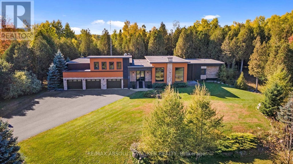 Welcome to 19421 Kenyon Concession 1, an architecturally distinctive home built in 2013 that seamlessly blends modern craftsmanship with natural beauty. Set on 75 breathtaking acres of forests, ponds, and private trails, this property offers unparalleled privacy and tranquility perfect as a primary residence, second home, or commercial retreat. The custom-built home features four spacious bedrooms and four bathrooms. Highlights include a huge walk-in pantry with an extra refrigerator, and an office overlooking the impressive rec room, ideal for productivity. The primary bedroom suite features two luxurious ensuite bathrooms, one with a soaker tub and the other with a walk-in shower, and two walk-in closets. A second bedroom, perfect for guests or teens, includes a walk-out deck with lovely views. The versatile lower level includes an in-law suite, an additional bedroom, hobby room, laundry room, and TV space. A screened-in porch lets you enjoy nature while keeping out bugs, and a hot tub hookup is already installed. Built with exotic woods and commercial-grade finishes, this home includes energy-efficient features such as geothermal heating, a backup generator, and solar potential for year-round comfort. Open-concept living areas are filled with natural light, creating an inviting atmosphere for relaxation and entertaining. Starlink is installed and the property is high-speed internet ready, making it ideal for modern remote work. A large outbuilding provides space for storage or creative projects, and the climate is ideal for hobby farming. Extensive trails lead to Loch Garry, a 900-acre recreational lake, with diverse habitats supporting rich wildlife, making this property a true haven for nature lovers. With a meticulously designed interior and stunning natural surroundings, this is a rare opportunity to experience luxury, privacy, and ecological harmony in one of Ontarios most picturesque regions. Don't miss your chance to own this exceptional home! (id:6289)