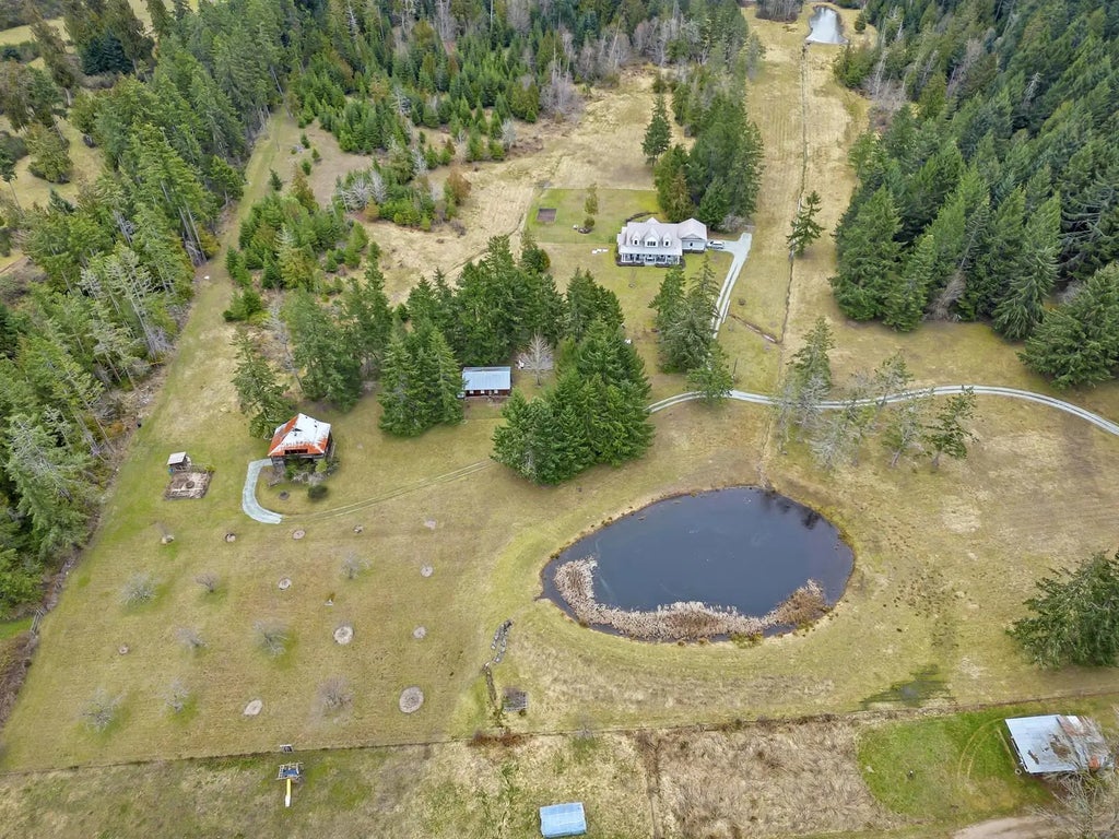 A long winding driveway welcomes you to this idyllic setting; sunny expansive 28.82 acre property with ocean glimpses and pastoral views, two ponds & spring, two wells, fruit trees galore, separate guest cottages or workshop with income-generating opportunities for a self-sufficient farm, guest accommodations and happy homestead. Lovely custom built home with 3 bedrooms, 3 bathrooms, den, open living, eating and kitchen area, separate dining, cathedral ceilings, covered verandas and private outdoor setting. Prime location in the heart of Miners Bay where you can walk to all amenities and sell local at the seasonal farmers market down the road at the historical agricultural fair grounds. A beautiful and bountiful opportunity awaits you! Zoned for another habitable dwelling.