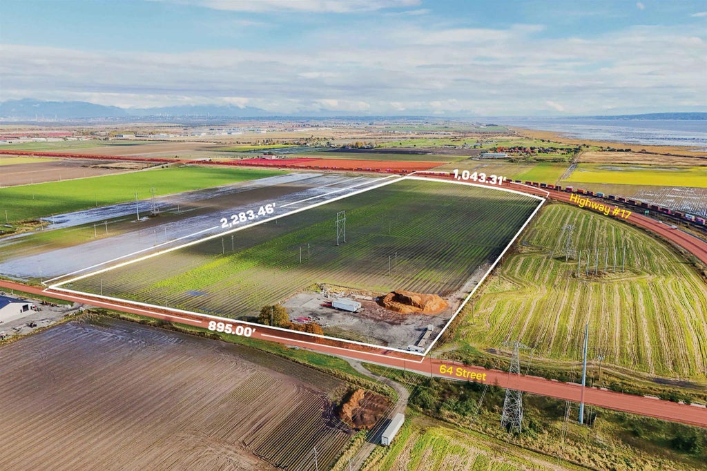 This 42.52-acre property offers fertile soil, perfect for a range of crops including blueberries and vegetables. With 1,043 feet of frontage along Highway #17, this high-exposure location provides excellent visibility and traffic for agricultural use. Build your dream home close to Delta Port and Delta Hospital, with convenient access to major shopping centers, schools, entertainment, and multiple highways, including Highway #17, Highway #17A, and Delta Port Way.