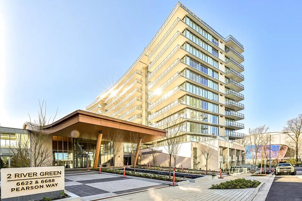 Welcome to TWO River Green by ASPAC, Richmond's most exquisite and high-end waterfront community! This luxurious and spacious unit on the 9th floor offers breathtaking river and mountain views, making it a truly exceptional place to call home. Functional hugh two bedroom and two bath spacious and bright unit has big living room, floor-to-ceiling windows flood the space with natural light, creating an inviting and airy atmosphere. 9-Foot ceilings enhancing the sense of space and elegance.Huge patio is perfect for relaxing or entertaining while enjoying stunning water and mountain views. Kitchen equipped with built-in high-end Miele appliances, ideal for culinary enthusiasts.High-quality materials and modem design throughout. Great amenities including 24-Hour Concierge,Indoor Pool, Hot Tub!