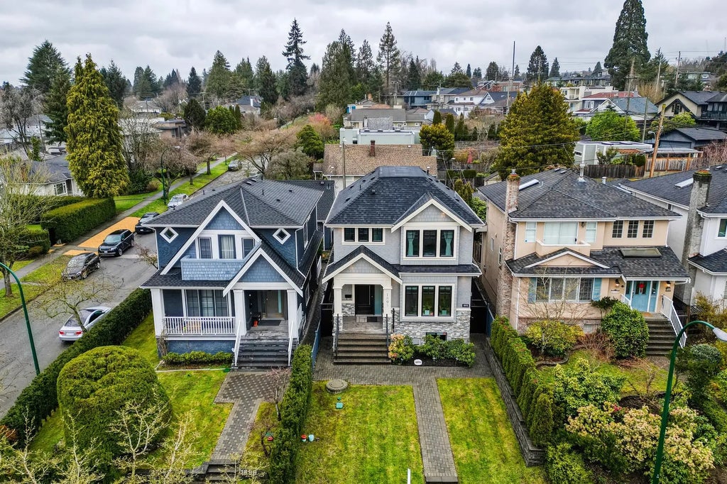 Open House Oct 12, 2-4pm Stunning contemporary home on a 33’ x 120’ (3,960 sqft) lot in prime SW Marine. The 2,769 sqft main house offers open-concept living/dining/kitchen with 10’ ceilings, Wolf/SubZero appliances, radiant heating, A/C, HRV, and two fireplaces. Upstairs: three ensuite bedrooms. The lower level includes a home theater, wet bar, guest bed, and legal suite. Outside, a 470 sqft laneway home (1 bed) adds rental income potential. Landscaped yard and single-car garage included. Steps to McKechnie Elementary, transit, and minutes to Magee Secondary, Choices Markets, and W 57th Ave amenities.