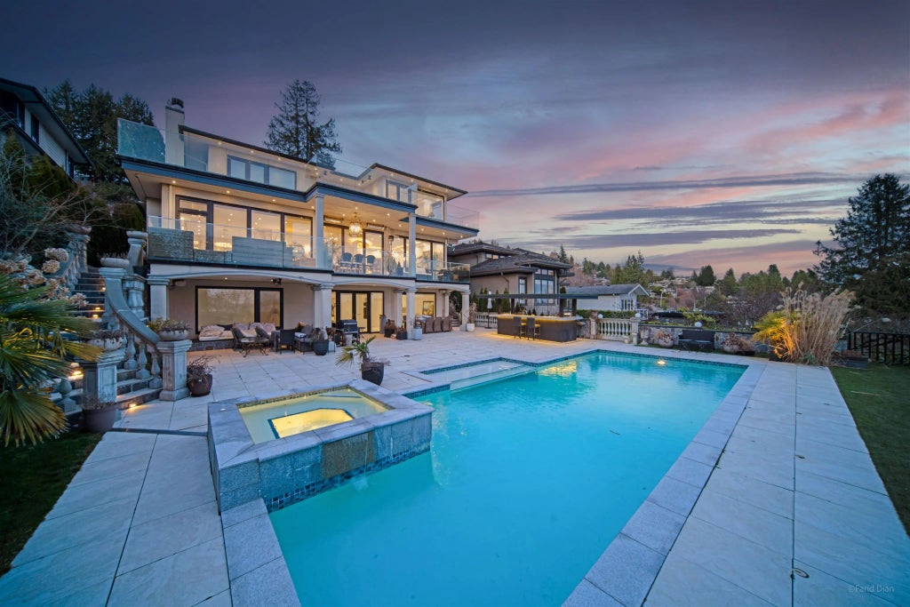 Presenting a masterpiece of architectural design and exceptional craftsmanship, this exquisite home is nestled in the prestigious Dundarave neighborhood, among some of West Vancouver’s finest properties. Spanning nearly 6,000 sqft, this luxurious residence offers five spacious bedrooms, six opulent bathrooms, and breathtaking panoramic views of the ocean, city, and iconic Lionsgate Bridge. The seamless blend of indoor and outdoor living is epitomized by expansive entertainment areas, including a year-round covered dining terrace, pool, fully equipped outdoor bar, fireplace lounge, and jacuzzi spa. Featuring impeccable materials, sophisticated finishes, and state-of-the-art technology, this home provides unparalleled comfort and security. With incredible stonework and a flat backyard, this