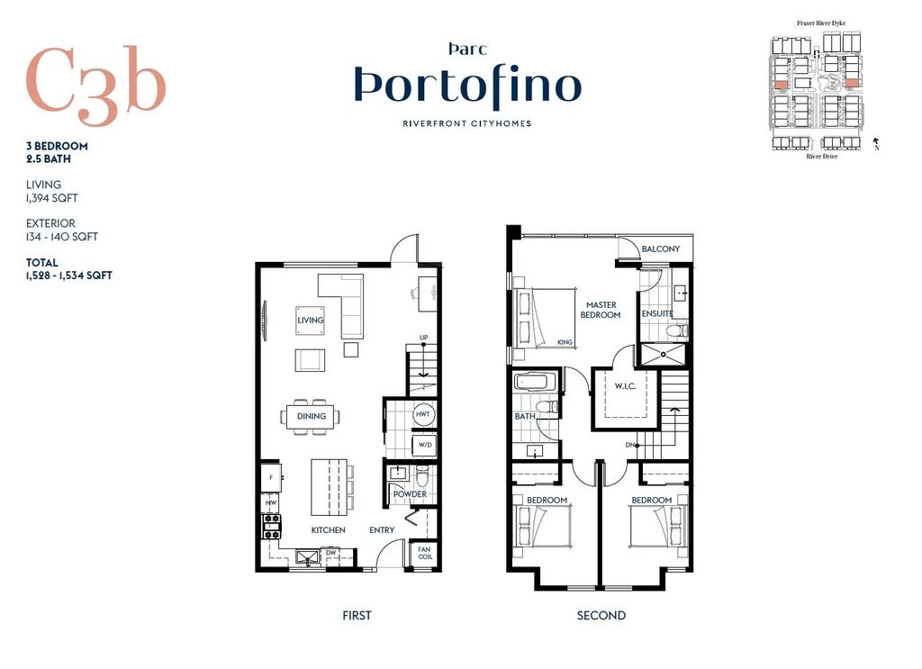 Experience luxury living in this 1,394 SF modern style townhome at Parc Portofino by Dava Developments by the river. This home features 3 bedrooms, 2.5 baths, 9-ft ceilings, and a gourmet kitchen with quartz countertops, an island, and stainless steel appliances. Additional perks include glass shower enclosures, roller shades, a full-size washer & dryer. Get it today and you'll enjoy 2/5/10 year new home warranty. Steps from the riverfront boardwalk, parks, transit, and Tait Elementary. 2 parkings spot included.