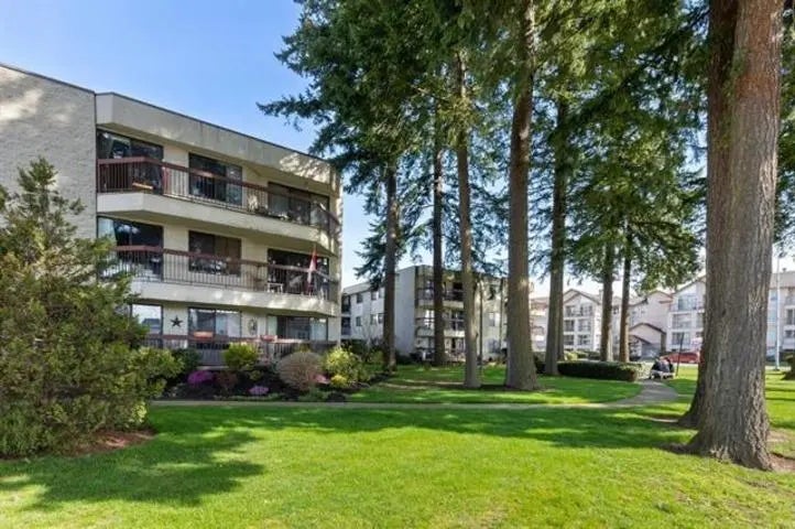 "Evergreen Village" this spacious 2-bed, 2-bath unit offers comfort and convenience in a prime location—steps from shopping, transit, and dining. A welcoming hallway leads to an open living room and dining area, while the functional kitchen features white appliances. The primary bedroom boasts a 2-piece ensuite, with a second bedroom just off the living space. Enjoy in-suite laundry with storage, abundant natural light from North & East-facing windows, and a generous East-facing balcony. Laminate flooring, updated toilets, and fresh paint throughout. This 55+ community (only one partner needs to be 55 yes you can have your children here ) features top-tier amenities: an indoor pool, hot tub, workshop, R/V parking, and included heat & hot water. A fantastic commuting location—act fast!