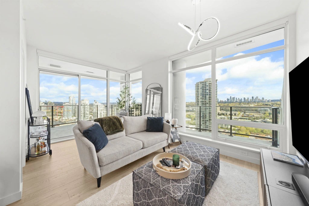 Welcome to Akimbo by Imani in the heart of Brentwood! This south-facing 2-bed 2-bath Corner unit offers 785 sqft of thoughtfully designed living space with an open-concept layout and breathtaking city views with extra space at balcony. Experience modern luxury with 9'ceilings, floor-to-ceiling windows, and kitchen equipped with premium appliances. Enjoy year-round comfort with individually controlled AC and heating. Amenities: gym, guest suite, party lounge, concierge service, and outdoor garden with BBQ area. Steps away from Brentwood Mall, Gilmore SkyTrain Station, Whole Foods, parks, and an exciting array of dining and shopping options. School catchment: Kitchener Elementary (3-min drive), Alpha Secondary (7-min drive), and BCIT (5-min drive).