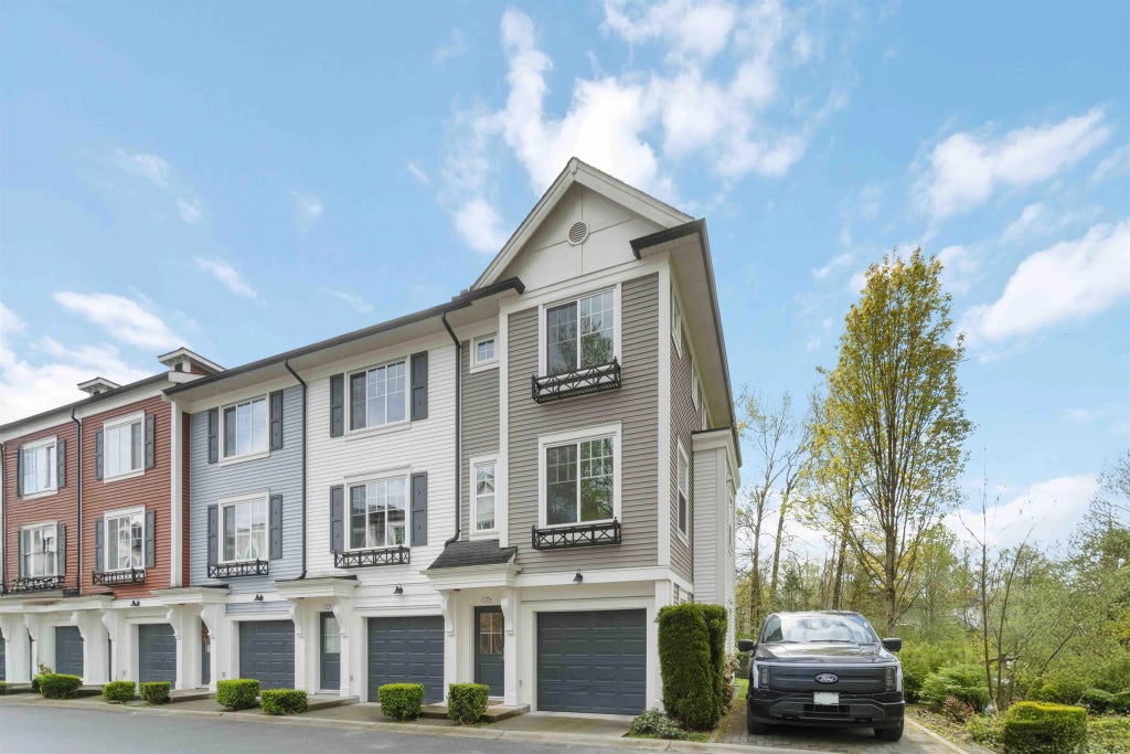 MOVE-IN READY, BRIGHT END UNIT backing onto greenspace in Westwood West by Mosaic! ~1200 sqft, 2 spacious bdrms, 2 full baths, close to transit, schools, shopping, recreation, trails, & all the Tri-Cities has to offer. Smart layout on the main w/ open-concept living, dining, & kitchen, plus lots of windows overlooking the greenspace & side community garden. Upstairs offers 2 bdrms incl. the primary w/ 3 pc ensuite. Features lots of fresh paint, laminate flrs & a well-appointed kitchen w/ stainless steel appliances, gleaming counters & oversized island. Big tandem double garage down w/ access to a fenced backyard. Enjoy the large back deck off the main w/ sunny southern exposure. Nicely located in the complex at the end of the row, right across from visitor parking. A MUST SEE!