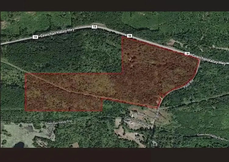 Vacant 196-acre lot on Paldi Rd, Cowichan Valley RD. Fantastic opportunity to invest in a large acreage with natural surroundings. Price includes approved water license & site servicing agreement enabling water & wastewater services to property & neighboring properties, including 15-yr latecomer agreement for those accessing water & wastewater services. Overall approval for 330 housing units & 100,000 SF commercial space, & the.re is development permit for the first 103 units of housing. CVRD may consider increasing the allocated density; buyer to verify development potential with CVRD. {Contact agent for details.) Court-Ordered Sale. Sold 'as is, where is.' Subject to court approval.