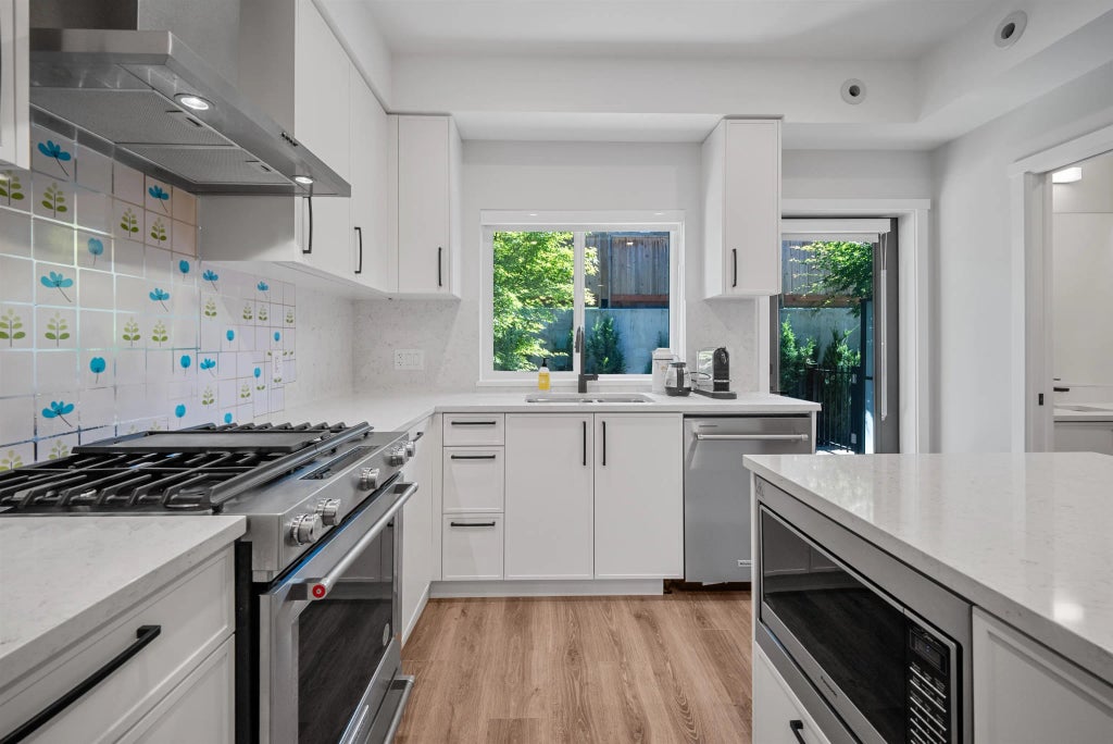 Welcome to STONE RIDGE! Proudly built by Allaire Living. Nestled on quiet inner street but close to everything you need for daily life.This energy efficient home features tankless hot water heater, A/C, custom-designed kitchen cabinetry, S/S appliances,quartz countertops, backsplash and higher ceiling. NuHeat heated floors in the ensuite for your comfort. Spacious master bdrm fits a king-size bed. Upstairs upgraded laminate floor thru all 3 bdrms. Tandem garage with bonus TWO EV charging. South facing spacious patio with the gas hookup- perfect for your summer BBQ! Close to skytrain station, future YMCA, Park and Safeway. Schools, restaurants, breweries, community and shops are steps away. Port Moody Secondary with IB program.