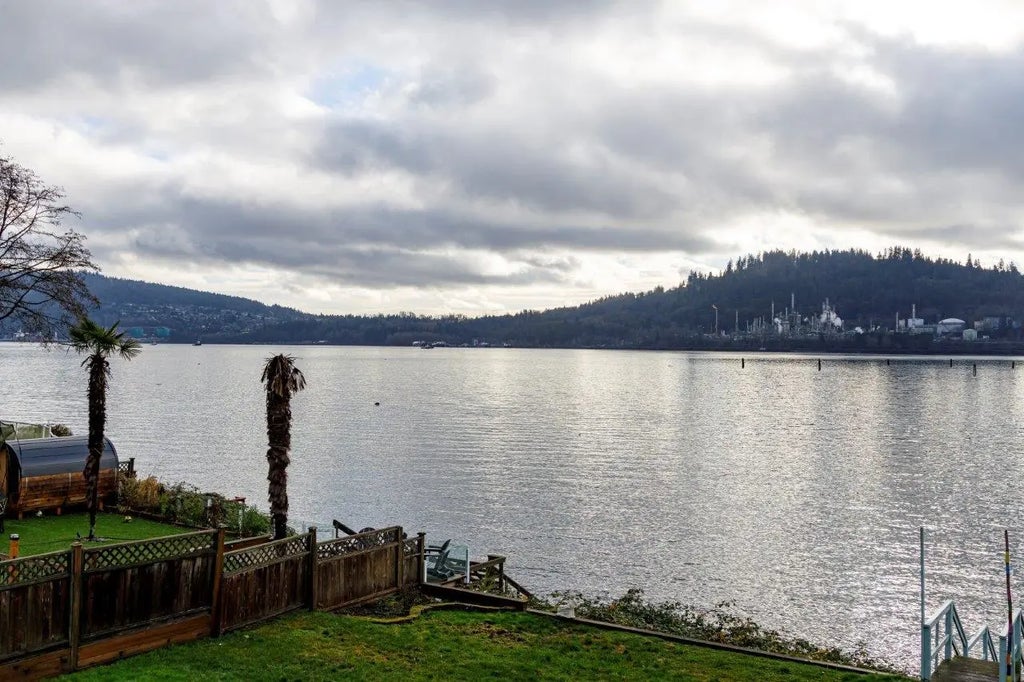 Affordable waterfront with private beach situated on Maplewood flats in North Vancouver. This is a large 50 x 224 sq. ft. lot with a custom 2 level, 2 x 6 frame construction, 3 bed,2 bath home,& spacious 2 bay garage built in 1986. The top level has a primary bedroom with ensuite & a 2nd room that could easily be converted to a 4th bedroom. The top level kitchen/living area has a large balcony with views of Burrard inlet. The 2 bedroom 1 bath lower floor has its own entrance & laundry room & could be suited. The lower level kitchen/living area is above ground & features a large outdoor patio. This home comes with a $5,000US per year opportunity to earn revenue. The private beach is great for water front activities like paddle boarding, kayaking, fishing, etc. Appointment Only.