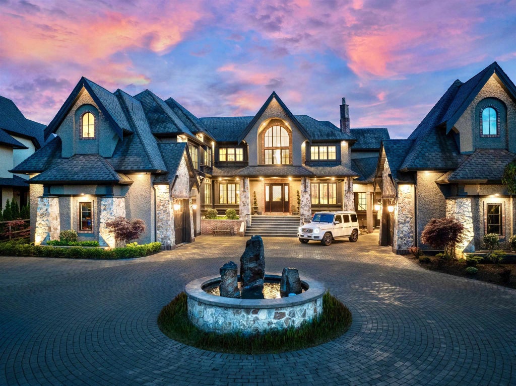 This luxurious estate sits on a prized 1.01-acre south-facing view lot in Langley’s exclusive High Point Estates. Showcasing timeless elegance and extraordinary craftsmanship, the home offers over 9700 sq ft across 3 levels. A grand two-storey foyer leads to formal living and dining areas, a gourmet kitchen with premium Wolf appliances, and an inviting family room. Step outside to a covered terrace with built-in BBQ and fireside lounge overlooking the pool, hot tub, and manicured grounds. With 6 bedrooms—including 2 lavish primary suites—and 9 bathrooms including a dedicated pool bathroom, every detail is thoughtfully designed. Lower level features a theatre, gym, sauna, office, guest suite, and stunning recreation lounge with wet bar. The home provides garage parking for up to 6 vehicles.