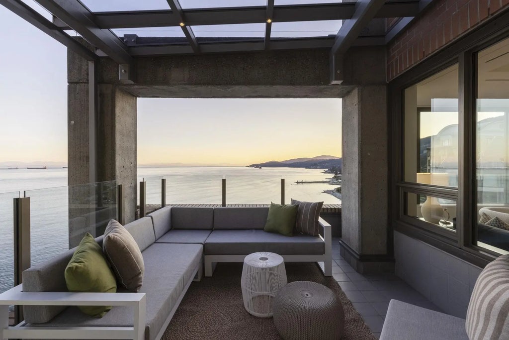 Welcome to Les Terraces, steps from the seawall, where only one unit occupies each floor. Spanning approx 3,000sqft, this sub-penthouse was substantially renovated to the studs at the highest level by Bradner Homes and HB Design. Open concept living/dining area w/ fireplace & incredible city, ocean & mountain views. Chef’s kitchen w/ Miele & Sub-Zero appliances, connected to the family room & large outdoor covered terrace. Stunning primary bdrm w/ covered patio & spa-like ensuite. Two more generous sized ensuite bdrms, full-size laundry room & powder room complete the impeccable floorplan. Other features include: automatic blinds, A/C, Lutron lighting, private 2 car garage w/ storage, 2 elevators, indoor pool, hot tub & on-site executive concierge. Steps to great cafes & restaurants.