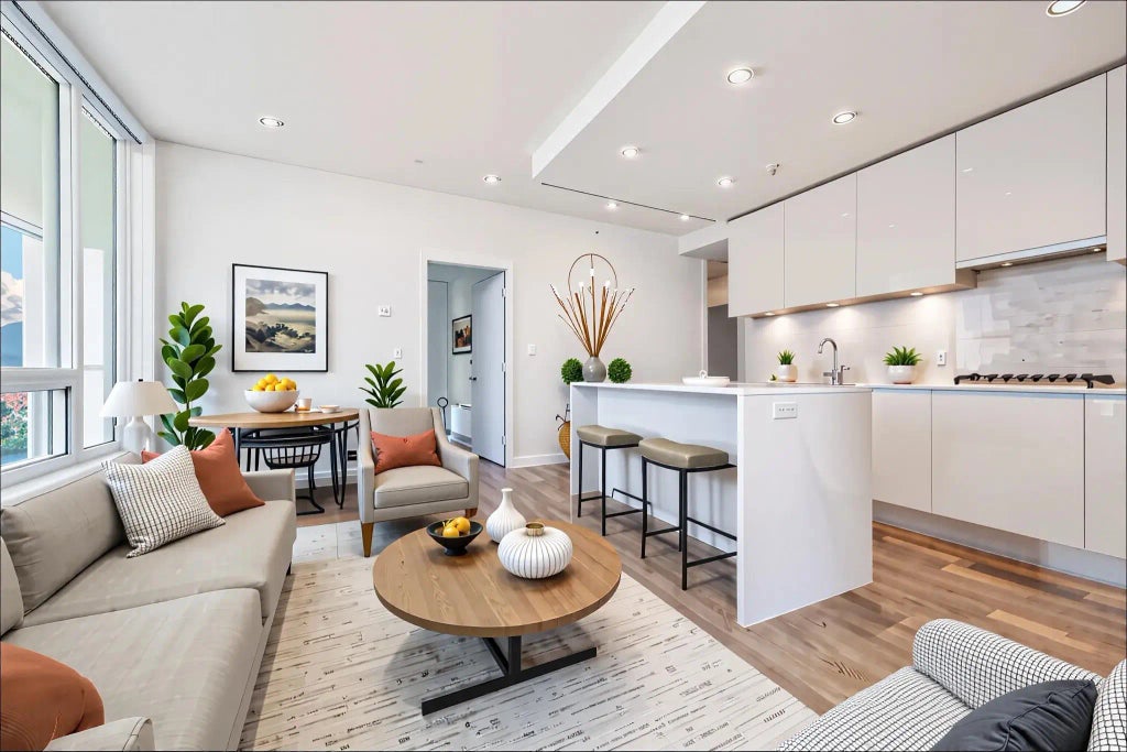 Welcome to Amazing Brentwood Building 3! This 32nd Floor South Facing Corner unit has breathtaking mountains and city views from every room! Built by the renowned Shape Properties known for their excellent quality and craftsmanship. This home features 2 bedrooms 2 bathrooms with 777 sqft of living space, and a large 384 sqft wrap-around outdoor patio with panoramic views. Its gourmet kitchen with Bosch appliances and open layout is perfect for entertaining! Comes with EV parking with FREE charging! Located in the heart of Brentwood this home is steps to shopping, transit, recreation and much more! Book your private showing today! Open house: Oct 5 Sunday 2:30pm to 4pm