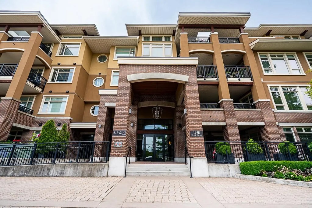 Luxury Living at Adagio II - 1,200 sf corner condo in South Surrey where sophisticated design meets everyday comfort. Situated on the preferred northeast corner of the building, this bright and airy 2-bed + den, 2-bath home offers open-concept living with exceptional privacy. Enjoy year-round entertaining and relaxation with two large covered patios that extend your living space. The stylish kitchen opens to a spacious living and dining area, perfect for gatherings or quiet evenings at home and the large windows fill the space with natural light. Resort-style amenities including a clubhouse with full kitchen, pool table, a fitness centre with steam room, and a quaint courtyard to unwind - nearby golf courses, shopping, transit and beach.