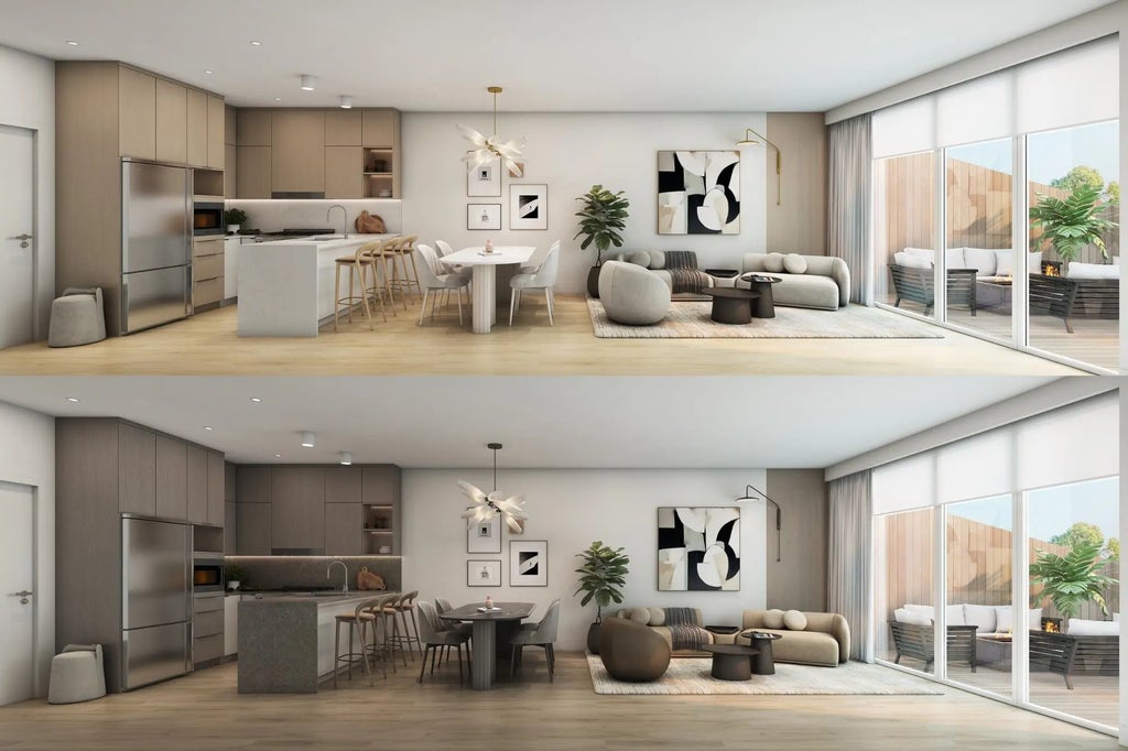 Kingsgate—where architectural elegance meets everyday comfort. This unique corner 2 Bed + Den + Studio Lock Off offers over 1,370 SQFT—ideal for multi-generational families, rental flexibility, or live-work setups. Located in a central South Surrey location, close to everyday essentials. Features include premium laminate flooring, Fisher & Paykel appliances, and a spa-inspired bathroom with quartz finishes. Step out onto a 125 SQFT balcony with BBQ gas hookup and enjoy central heating & cooling year-round. Includes parking, storage, and access to elevated amenities: fitness centre, yoga studio, and outdoor firepit. Completing Spring 2026.