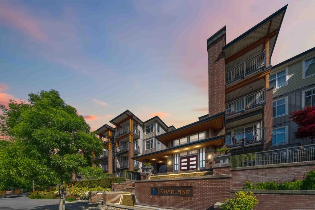 Great location in the Austin Heights neighborhood of West Coquitlam. Situated on a quiet side street, you can walk to Blue Mountain park, Vancouver Golf club or all the shopping and restaurants along Austin. The 4 storey Charland building with its historic brick architecture, features 9 foot ceilings, open plan layout, gourmet kitchen with quartz counters, custom designed cabinets, high end stainless steel appliances & centre island with built in microwave. Halogen pot lights & under cabinet lighting, Porcelain tile flooring in bathroom & laundry closet. Soaker tub with full height tile surround. In suite laundry with front loading stackable washer and dryer. 1 bedroom with a den area. Enjoy your outdoor living with a covered south facing patio. Great for investment or move in.