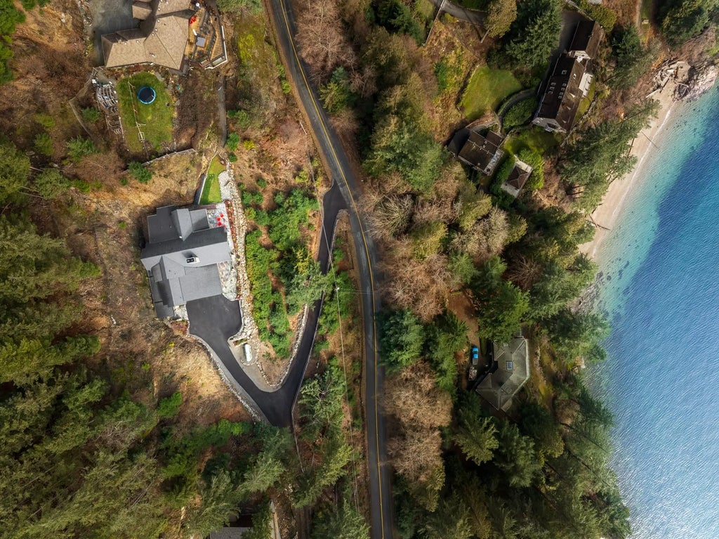 This stunning ocean view property featuring a masterpiece of engineering, custom built, Canadian Timberframe Ltd home is ready to welcome a new family. The expansive timber peaks & over 1100 sq.ft. covered entertainment deck sets it apart. The open plan main floor boasts timberframe ceilings soaring over 24'. Custom Loewen Douglas Fir interior/metal exterior windows & doors, engineered Hickory flooring & exclusive lighting compliment the space. Chefs will covet the gourmet kitchen with state of the art appliances & expansive Quartz countertops. Main level primary bedroom, ensuite & walk in closet showcase the cathedral timberframe ceilings. A special retreat w/floor to ceiling fireplaces & private decks overlooking ocean, mountain and coastal views. Vancouver within easy reach.