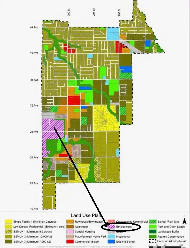 INVESTOR ALERT ,Brookswood/Fernridge OCP Approx 2.09 acres under new employment lands zoning and is adjacent to Surrey’s Campbell Heights industrial area. Beautiful setting with house that has 2 bedroom unauthorized suite, well kept 3 bedroom mobile home, 2 stall barn, separate garage 24x16. Very private long driveway hidden from the street. Tall trees, gardens, fenced area. Gravael based very well drained good for parking. Good property for a group of investors to hold or a family that wants to invest in their principal residence and wait for the development.Neighbouring property available too as Land Assembly.