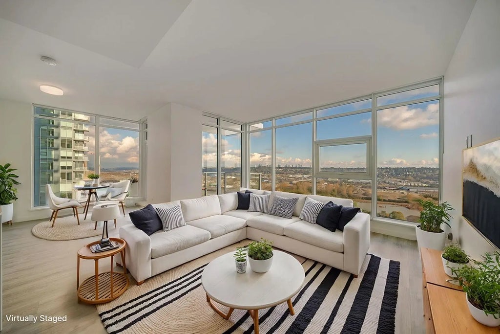 Experience premier waterfront living at PIER WEST by Bosa, in this stunning 28/f home w/panoramic views of the Fraser River. 2 Bed + Den 1237 sqft. home combines modern design w/high-end finishes w/water views from every room, featuring a chef-inspired kitchen w/BOSCH appliances, quartz waterfall countertops & ample soft-close Italian cabinetry. Efficient open-concept layout complemented by A/C & spa-inspired bathrooms, ensures year-round comfort. Residents enjoy exclusive access to the Owners' Club amenities: 24-hour concierge, gym dining room, outdoor lounges, and more, Just steps from SkyTrain, dining, shopping, and vibrant boardwalk. Includes $10K EV Charger Upgrade & Private Storage.
