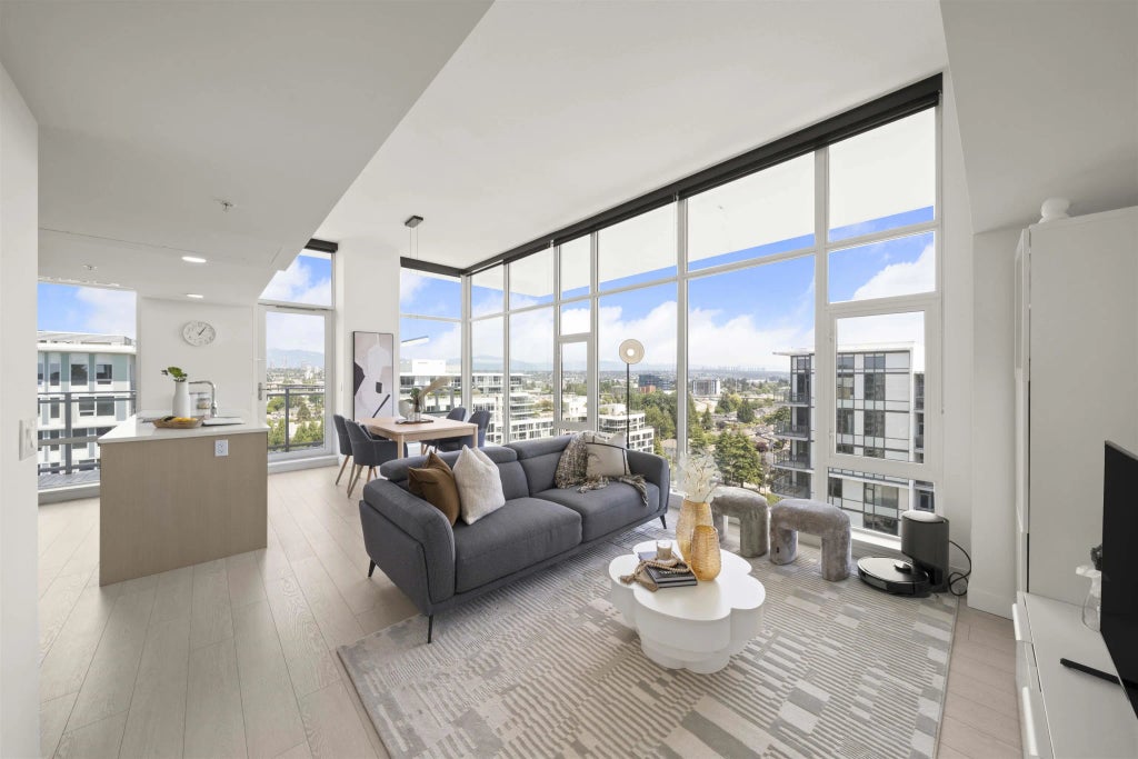 EXCELLENT CONDITION. Luxury penthouse living at Concord Gardens, built by renowned developer Concord Pacific. This bright, air-conditioned 3-bedroom, 3-bathroom unit features TWO ENSUITES and 10.8 ft CEILING. Enjoy stunning northeast views of Panorama Mountain and the city skyline. Located on the exclusive top penthouse level with only two units, offering ultimate privacy. TWO SIDE-by-SIDE PARKING spots conveniently next to the elevator. Residents have access to the Diamond Club, featuring an indoor pool, sauna, gym, bowling alley, basketball court, golf simulator, private theatre, and karaoke room. Prime location within walking distance to T&T Supermarket, Capstan SkyTrain Station, and a variety of restaurants.