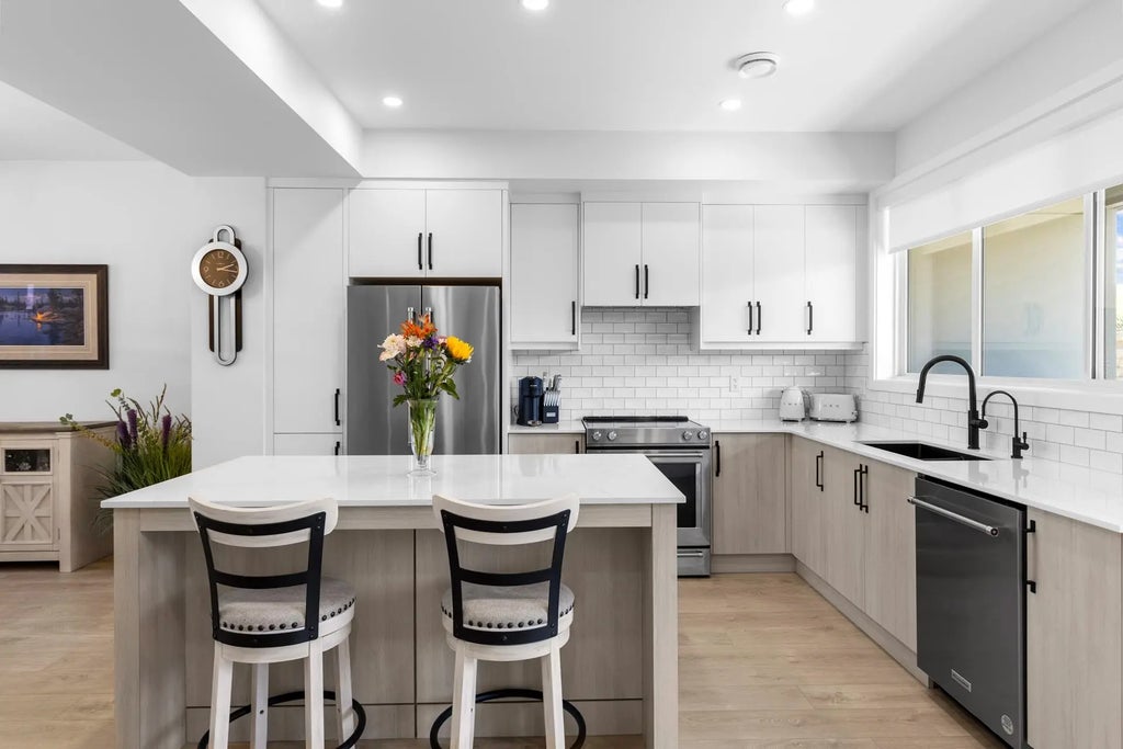 Enjoy stunning mountain views steps from Main Street & Osoyoos Lake in this beautifully upgraded 3 bed, 3 bath home. Perfectly blending comfort & convenience, it features a garage with epoxy floors, electric heater & a custom workshop for hobbies or extra storage. The bright kitchen includes a reverse osmosis system & opens to a welcoming living room with a cozy fireplace. Laminate flooring enhances all stairs & landings, while the stylish laundry room offers side-by-side washer/dryer & upgraded built-ins. Start your day with coffee & end it with wine—both enjoyed on scenic balconies overlooking panoramic mountain views. The outdoor pool & hot tub offer a resort-style escape. Walk to shops, cafes & restaurants, or spend your days golfing, boating & soaking up the Okanagan lifestyle!